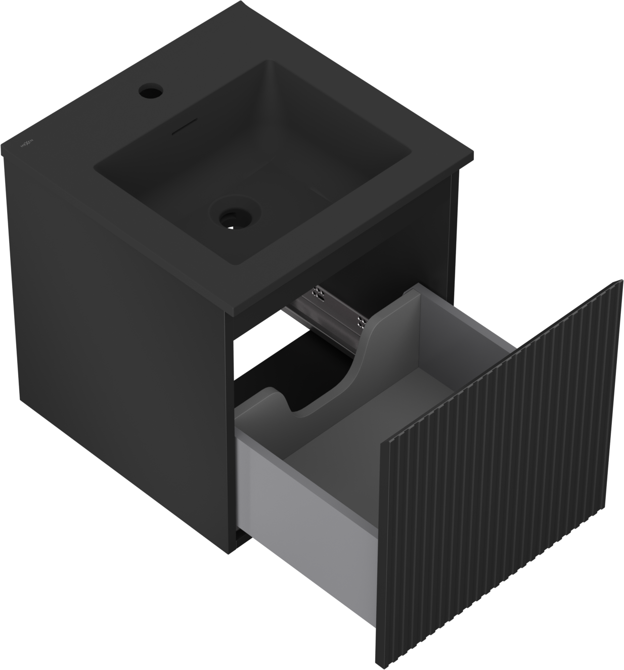 Mexen Rivel badrumsskåp 45 cm med handfat Otis, 1 låda, räfflad, svart matt - 91A20-04547-1-BF71-W18M71