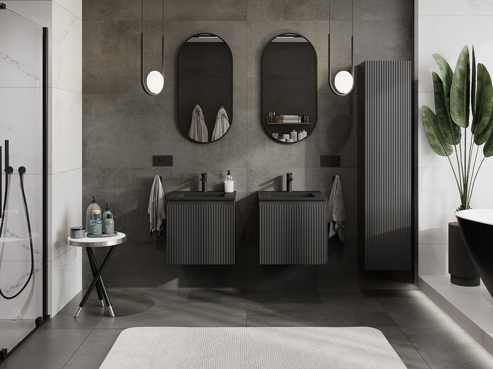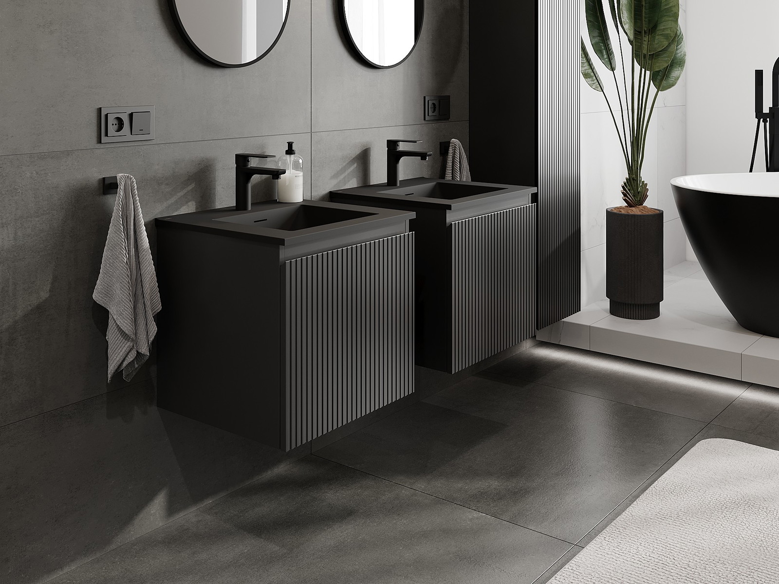Mexen Rivel 50 cm badrumsskåp med tvättställ Otis, 1 låda, räfflad, svart matt - 91A20-05047-1-BF71-W18M71