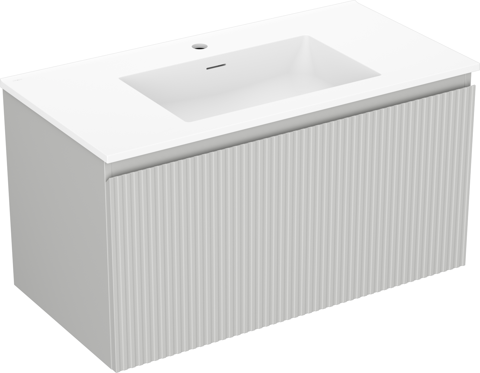 Mexen Rivel badrumsskåp 90 cm med handfat Otis, 1 låda, ribbad, grå matt/vit matt - 91A20-09047-1-BF62-W18M01
