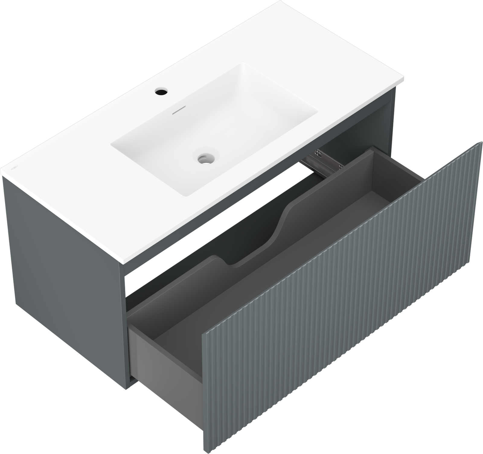 Mexen Rivel badrumsskåp 100 cm med handfat Otis, 1 låda, räfflad, grafit matt/vit matt - 91A20-10047-1-BF66-W18M01