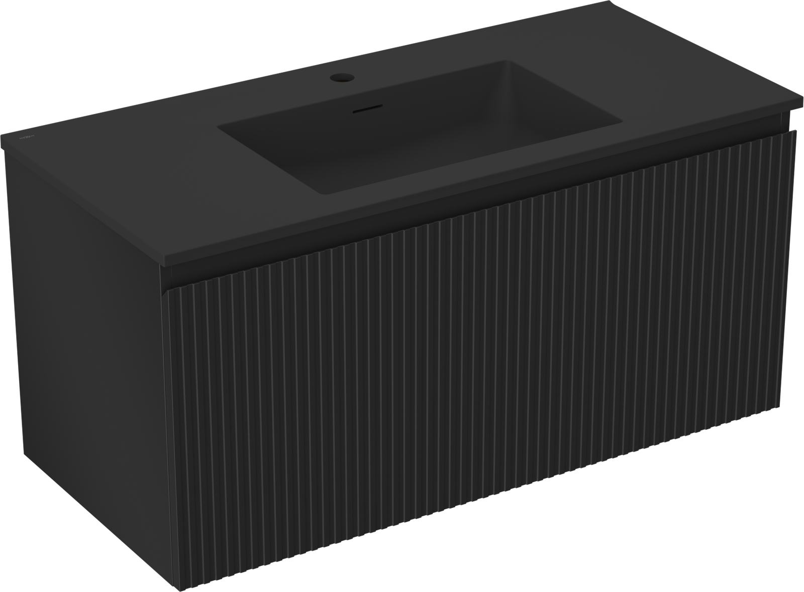 Mexen Rivel badrumsskåp 100 cm med handfat Otis, 1 låda, räfflad, svart matt - 91A20-10047-1-BF71-W18M71