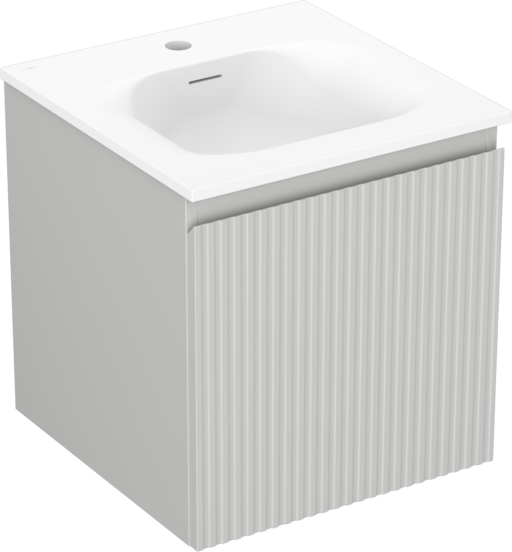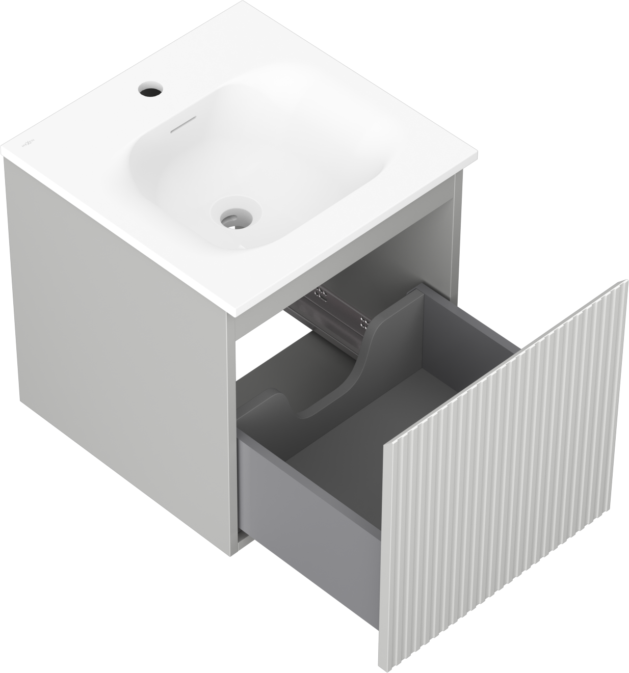 Mexen Rivel badrumsskåp 45 cm med tvättställ Vela, 1 låda, räfflad, grå matt/vit matt - 91A20-04547-1-BF62-W23M01