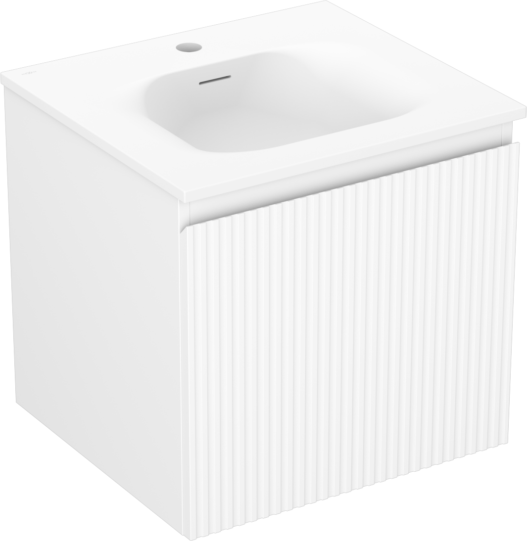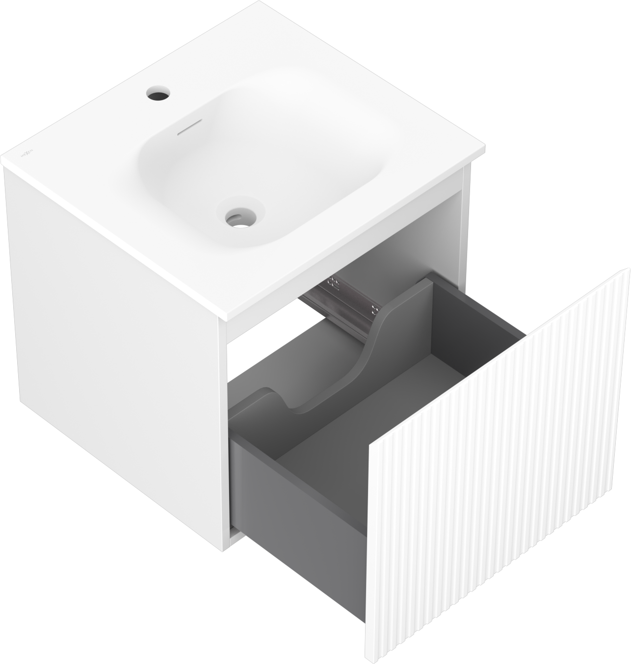 Utskärningen i lådan är utformad på ett sådant sätt att den rymmer vattenlåset som är nödvändigt i tvättställsinstallationer. Tack vare detta kan möbeln installeras fullt ut funktionellt, utan att behöva avstå från utrymme i lådan för installationen.