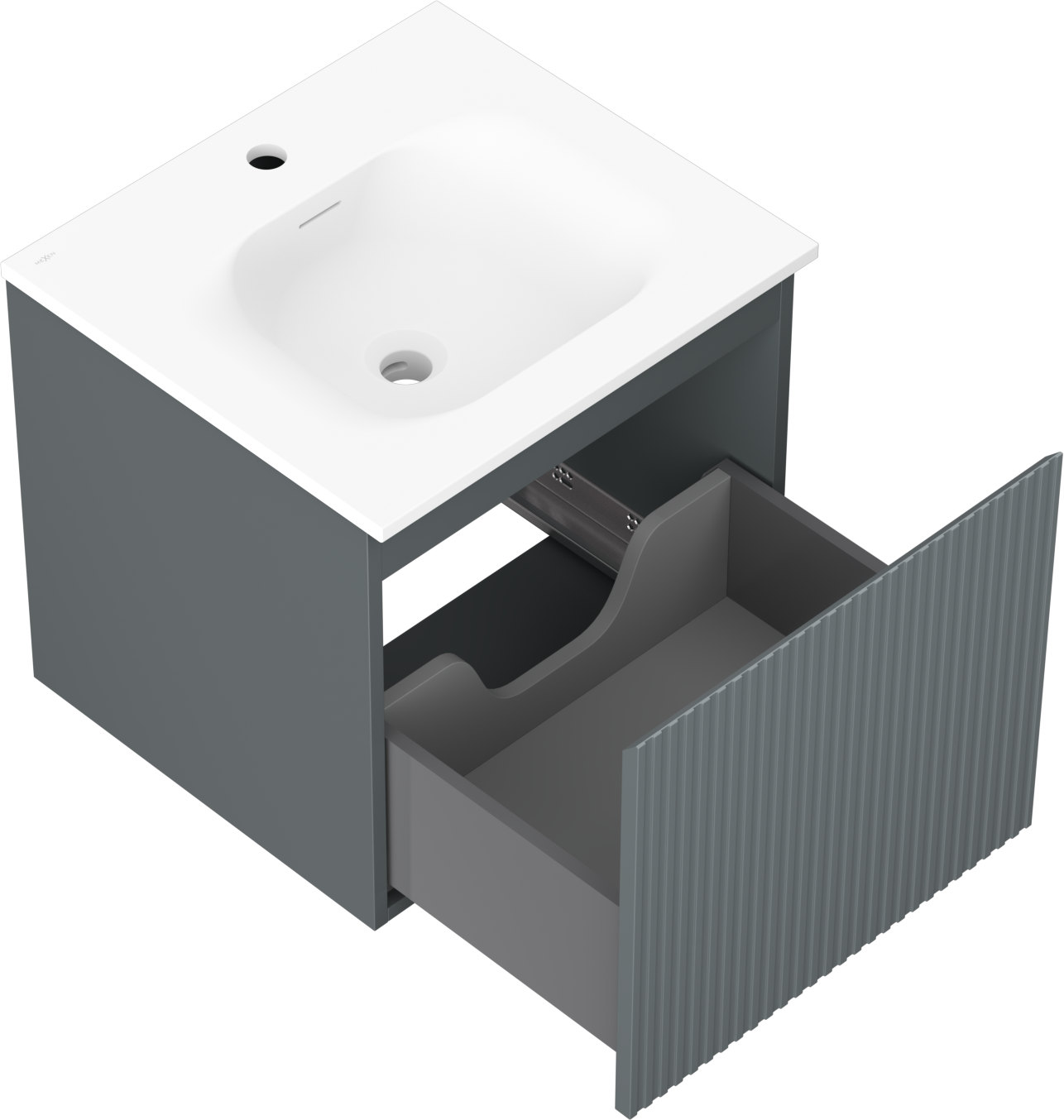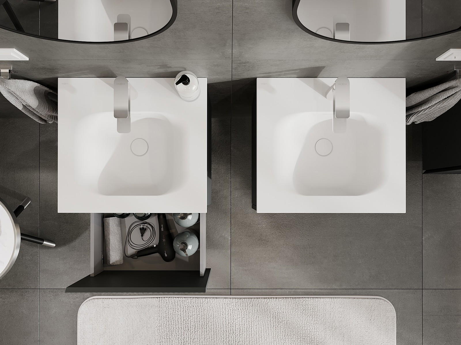 Mexen Rivel badrumsskåp 50 cm med handfat Vela, 1 låda, rätfilad, grafit matt/vit matt - 91A20-05047-1-BF66-W23M01