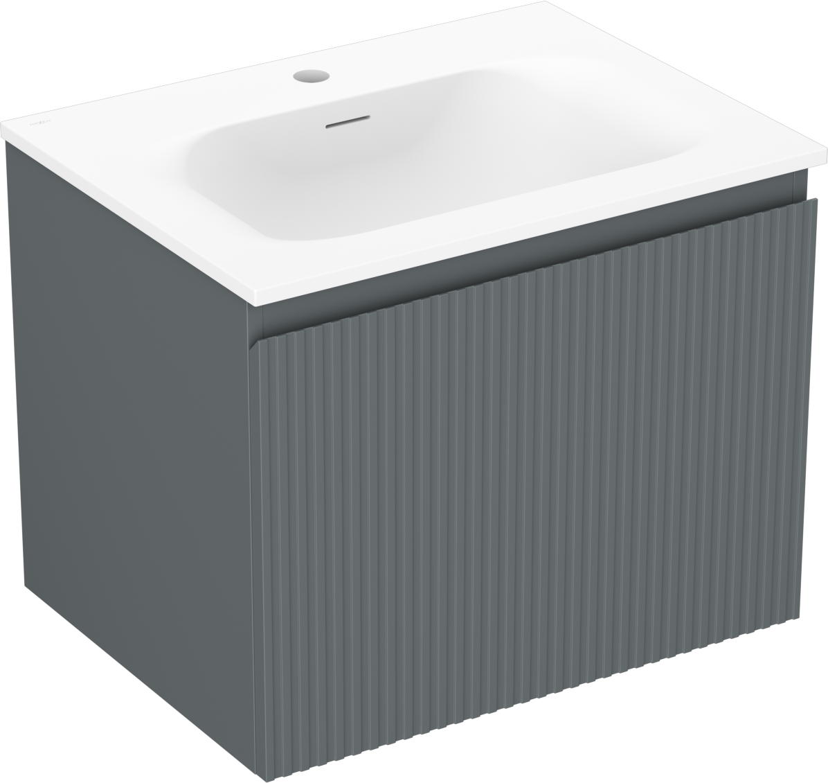 Mexen Rivel badrumsskåp 60 cm med handfat Vela, 1 låda, ribbad, grafit matt/vit matt - 91A20-06047-1-BF66-W23M01