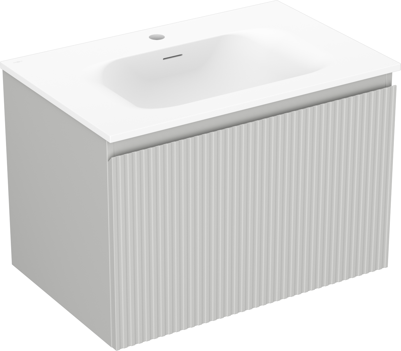 Mexen Rivel badrumsskåp 70 cm med handfat Vela, 1 låda, räfflad, grå matt/vit matt - 91A20-07047-1-BF62-W23M01