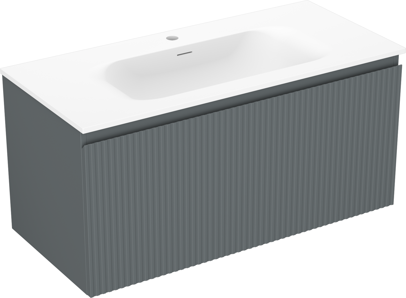 Mexen Rivel badrumsskåp 100 cm med tvättställ Vela, 1 låda, räfflad, grafit matt/vit matt - 91A20-10047-1-BF66-W23M01