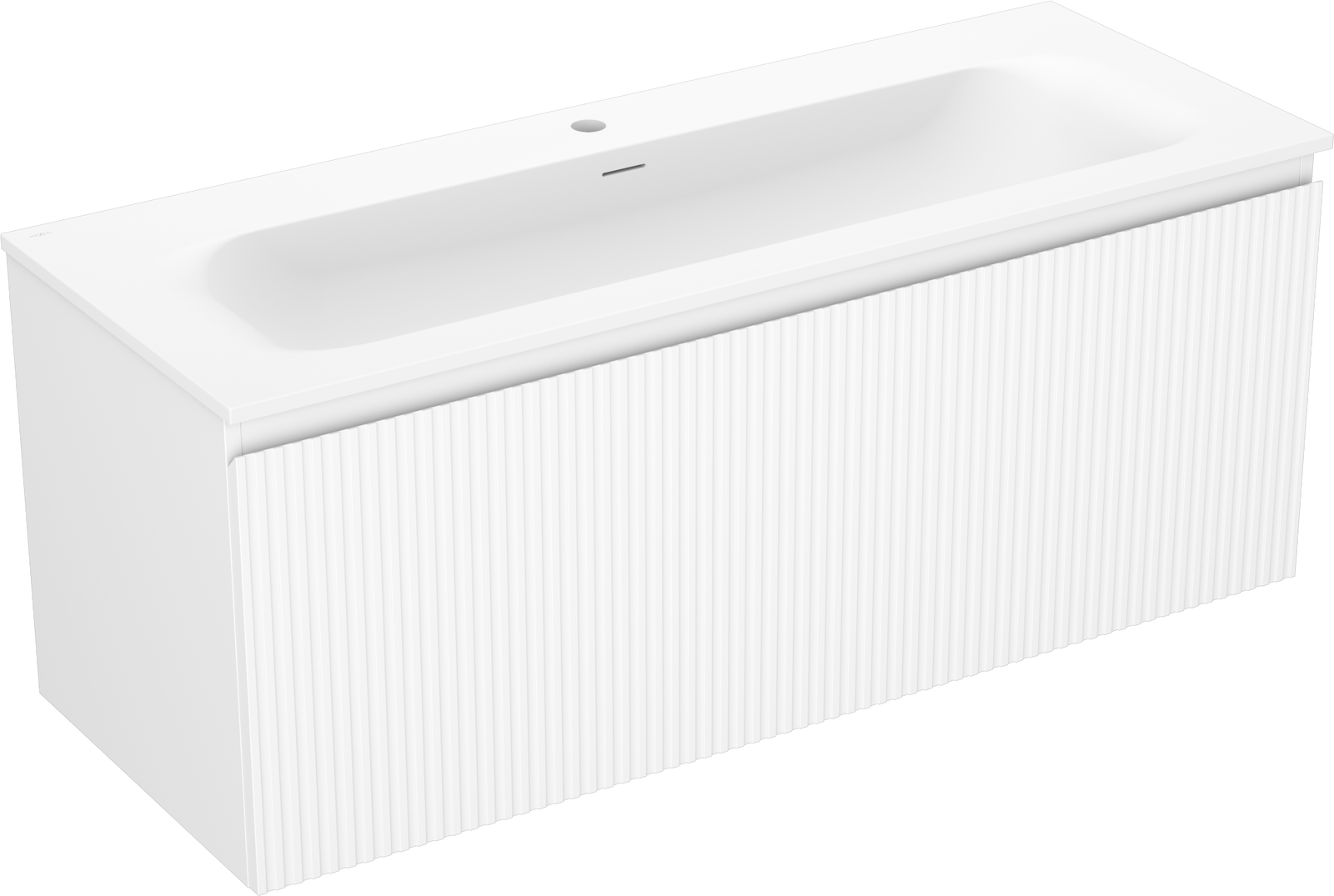 Utskärningen i lådan är utformad på ett sådant sätt att den rymmer vattenlåset som är nödvändigt i tvättställsinstallationer. Tack vare detta kan möbeln installeras fullt ut funktionellt, utan att behöva avstå från utrymme i lådan för installationen.