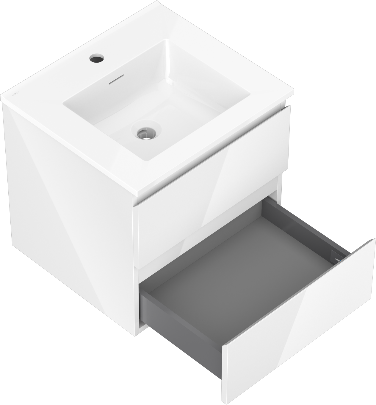 Mexen Orio badrumsskåp 50 cm med tvättställ Otis, 2 lådor, vit glans - 91A10-05047-2-BFF00-W18M00