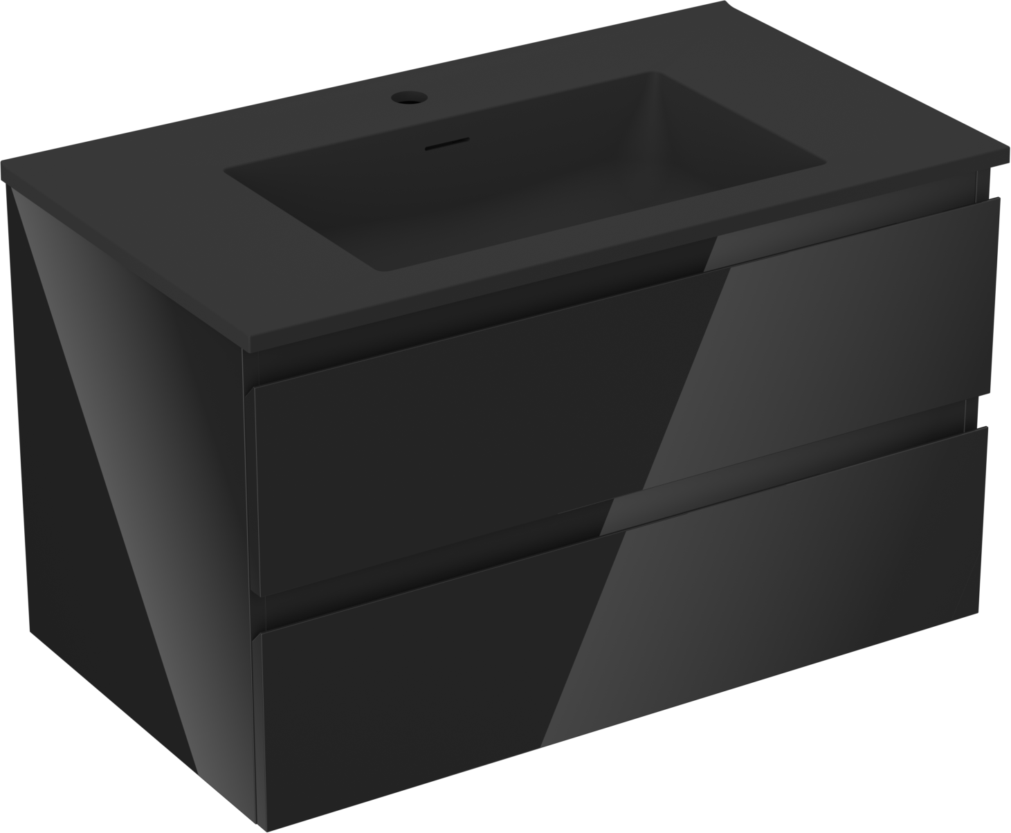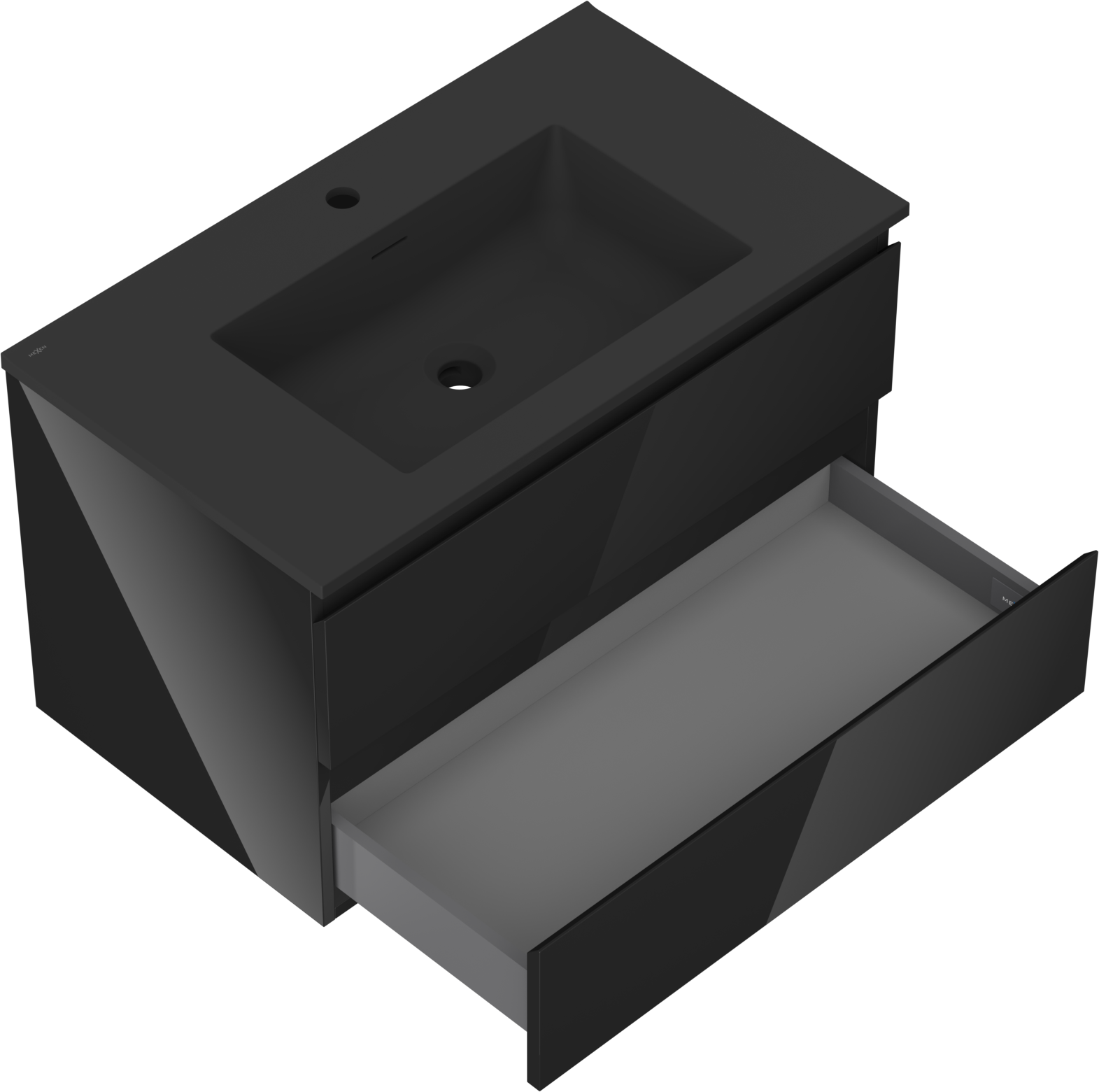 Mexen Orio badrumsskåp 80 cm med handfat Otis, 2 lådor, svart högglans/svart matt - 91A10-08047-2-BFF70-W18M71
