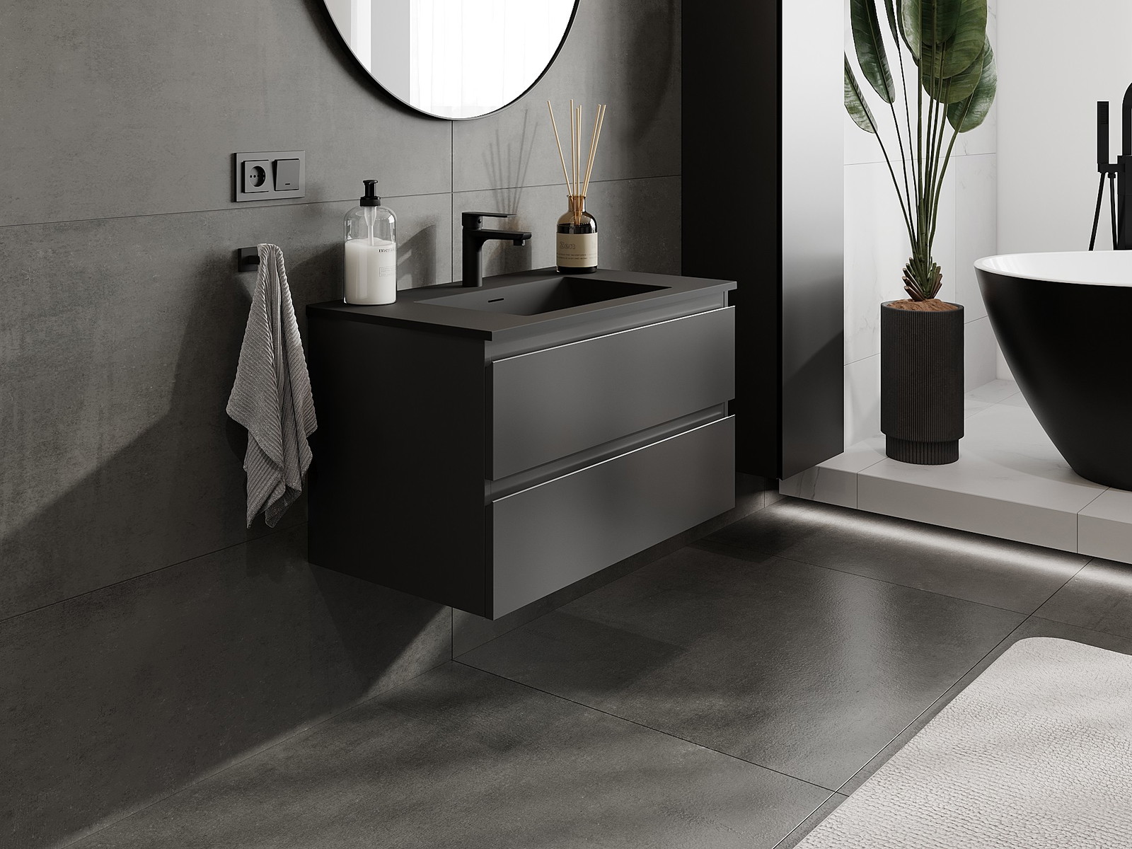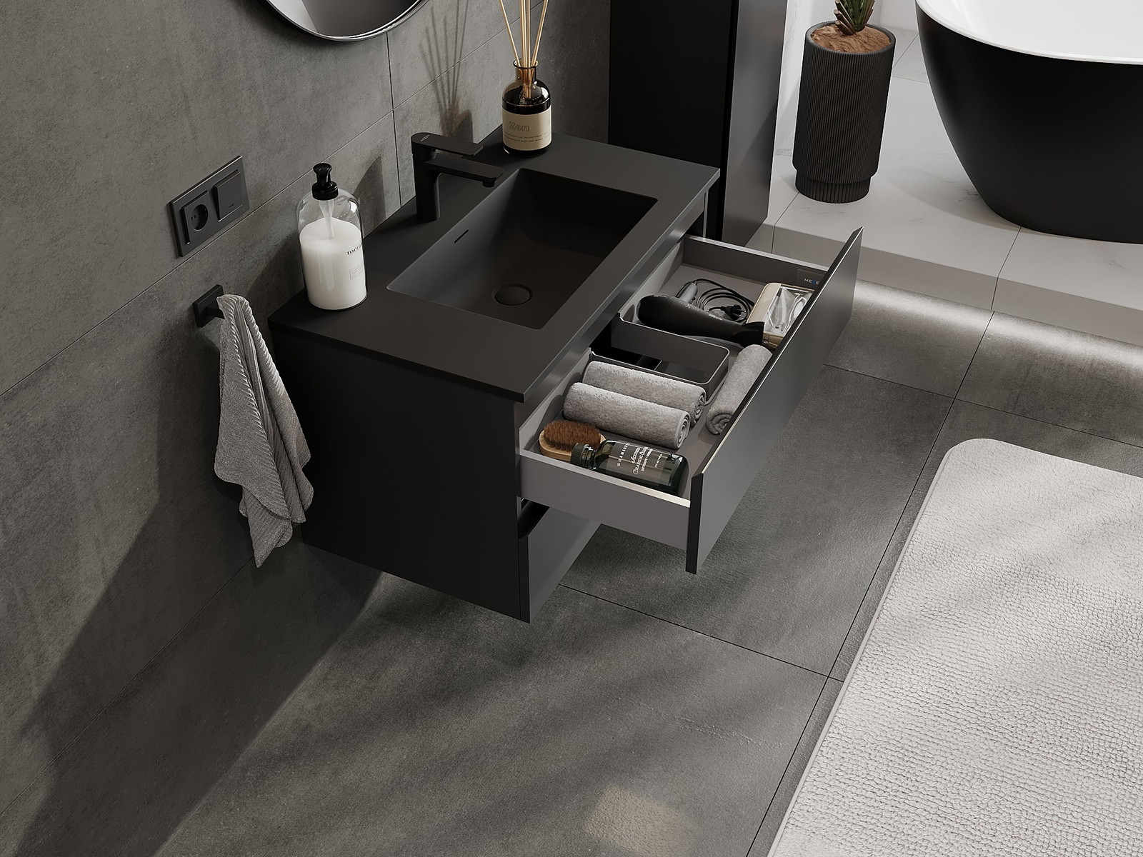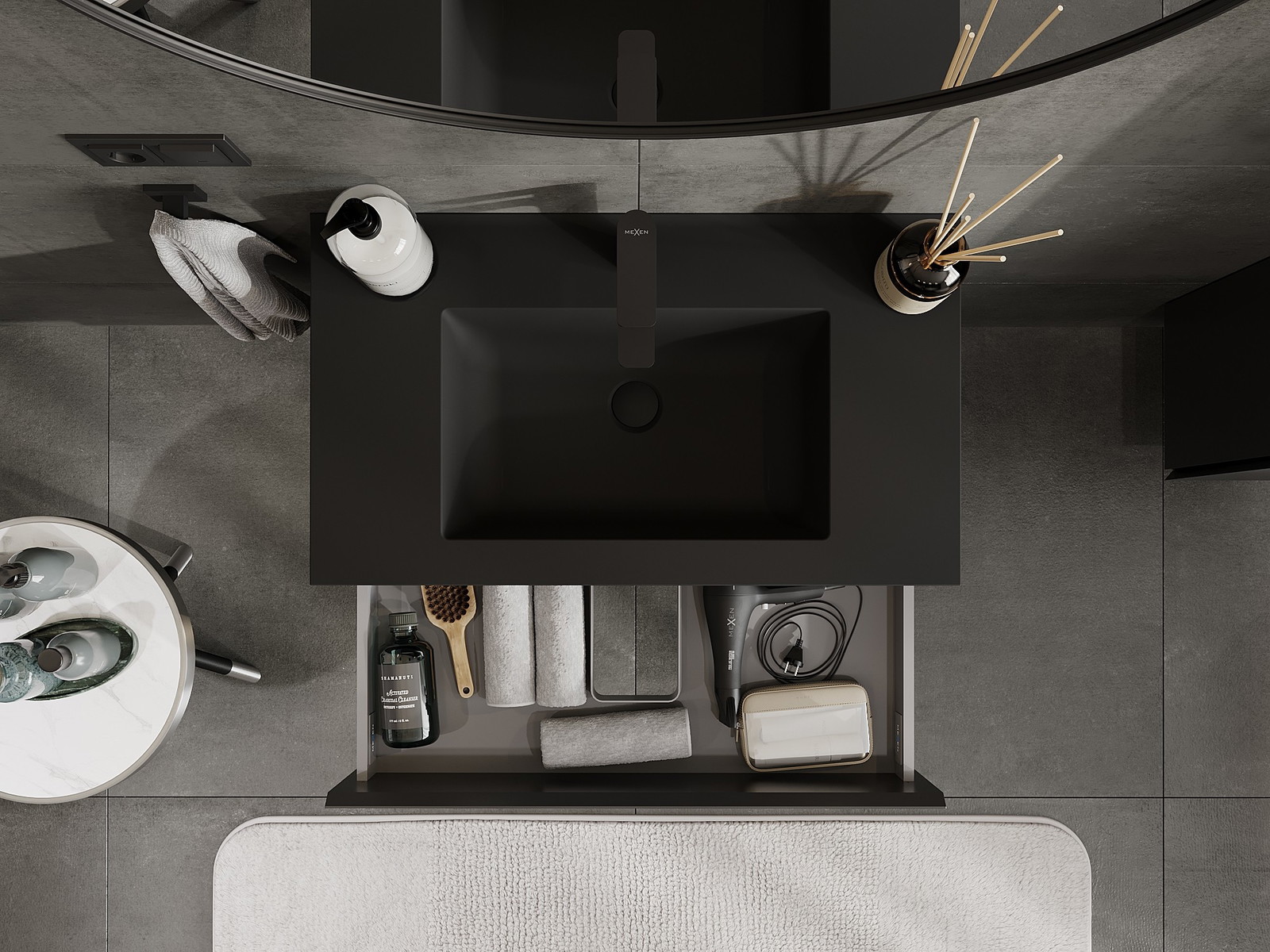 Mexen Orio badrumsskåp 80 cm med handfat Otis, 2 lådor, svart matt - 91A10-08047-2-BFF71-W18M71