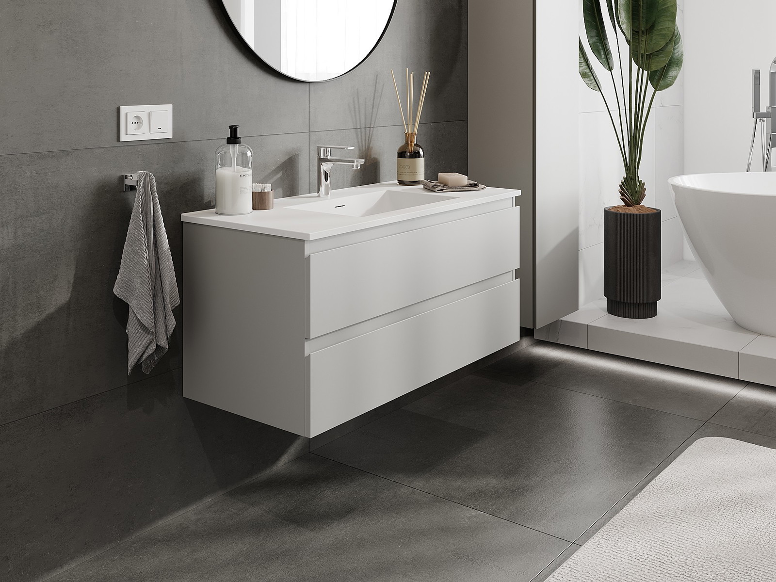 Våra modulära badrumsmöbler kan kombineras i olika färgkonfigurationer, vilket möjliggör fullständig personalisering. Du kan välja både utseende och funktioner för respektive delar, vilket gör att möblerna kan anpassas till dina egna stilistiska och funktionella preferenser.