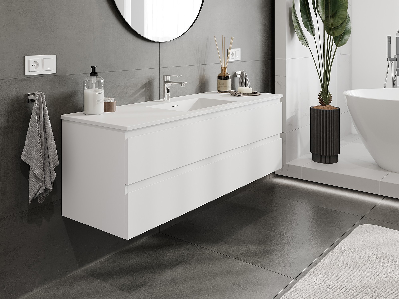 Våra modulära badrumsmöbler kan kombineras i olika färgkonfigurationer, vilket möjliggör fullständig personalisering. Du kan välja både utseende och funktioner för respektive delar, vilket gör att möblerna kan anpassas till dina egna stilistiska och funktionella preferenser.
