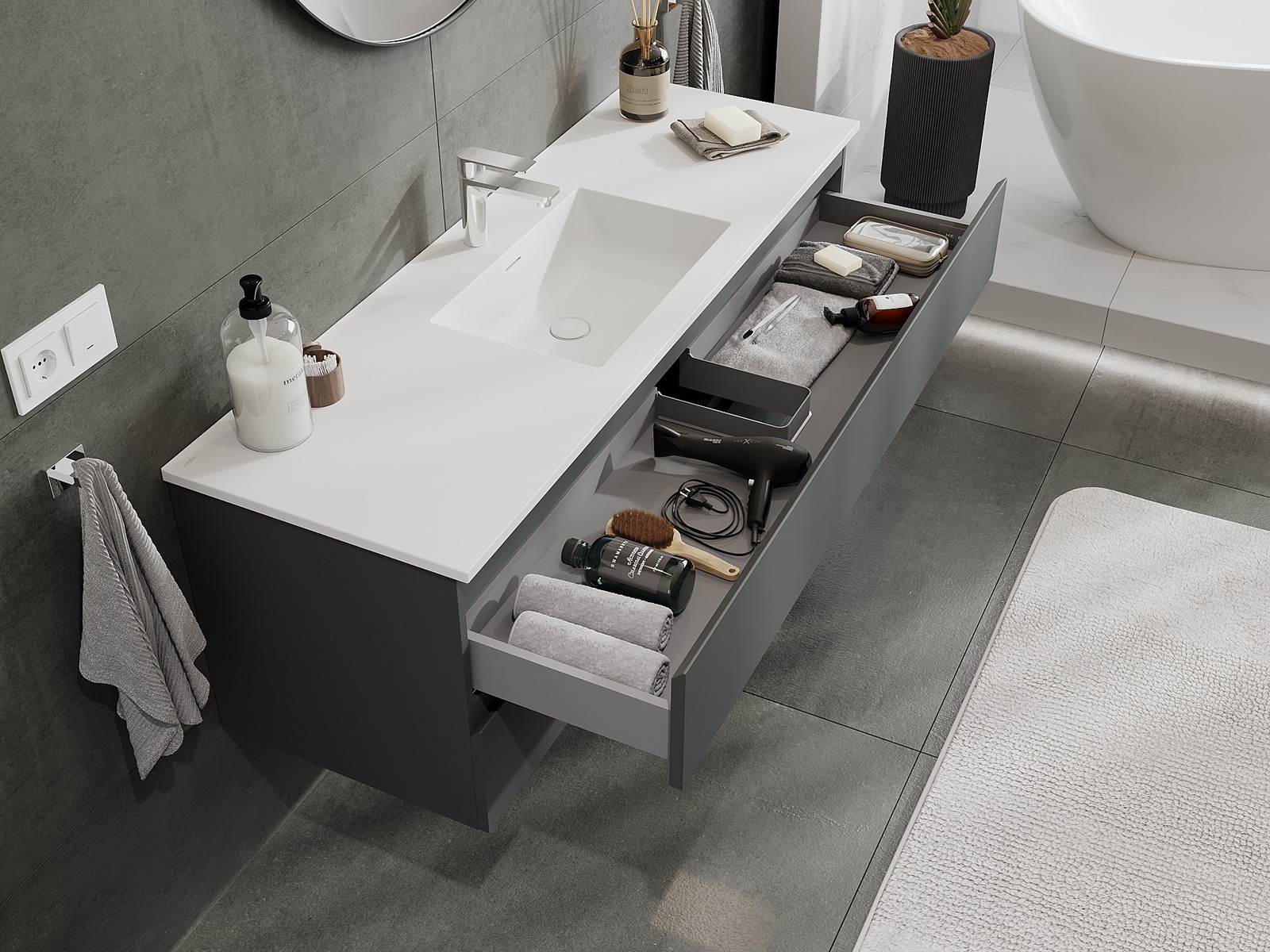 Mexen Orio badrumsskåp 140 cm med tvättställ Otis, 2 lådor, grafitmatt/vit matt - 91A10-14047-2-BFF66-W18M01