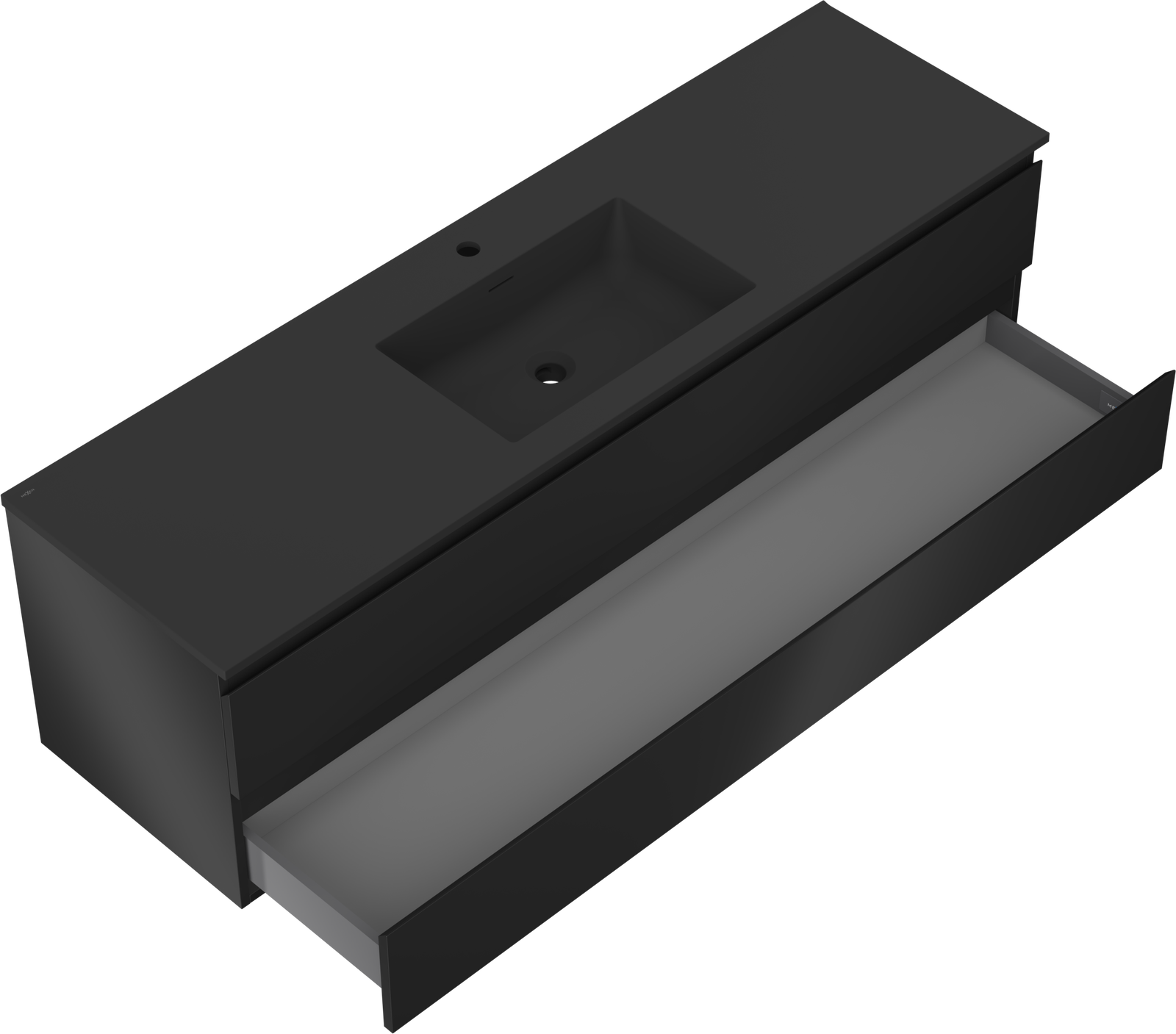 Mexen Orio badrumsskåp 160 cm med handfat Otis, 2 lådor, svart matt - 91A10-16047-2-BFF71-W18M71