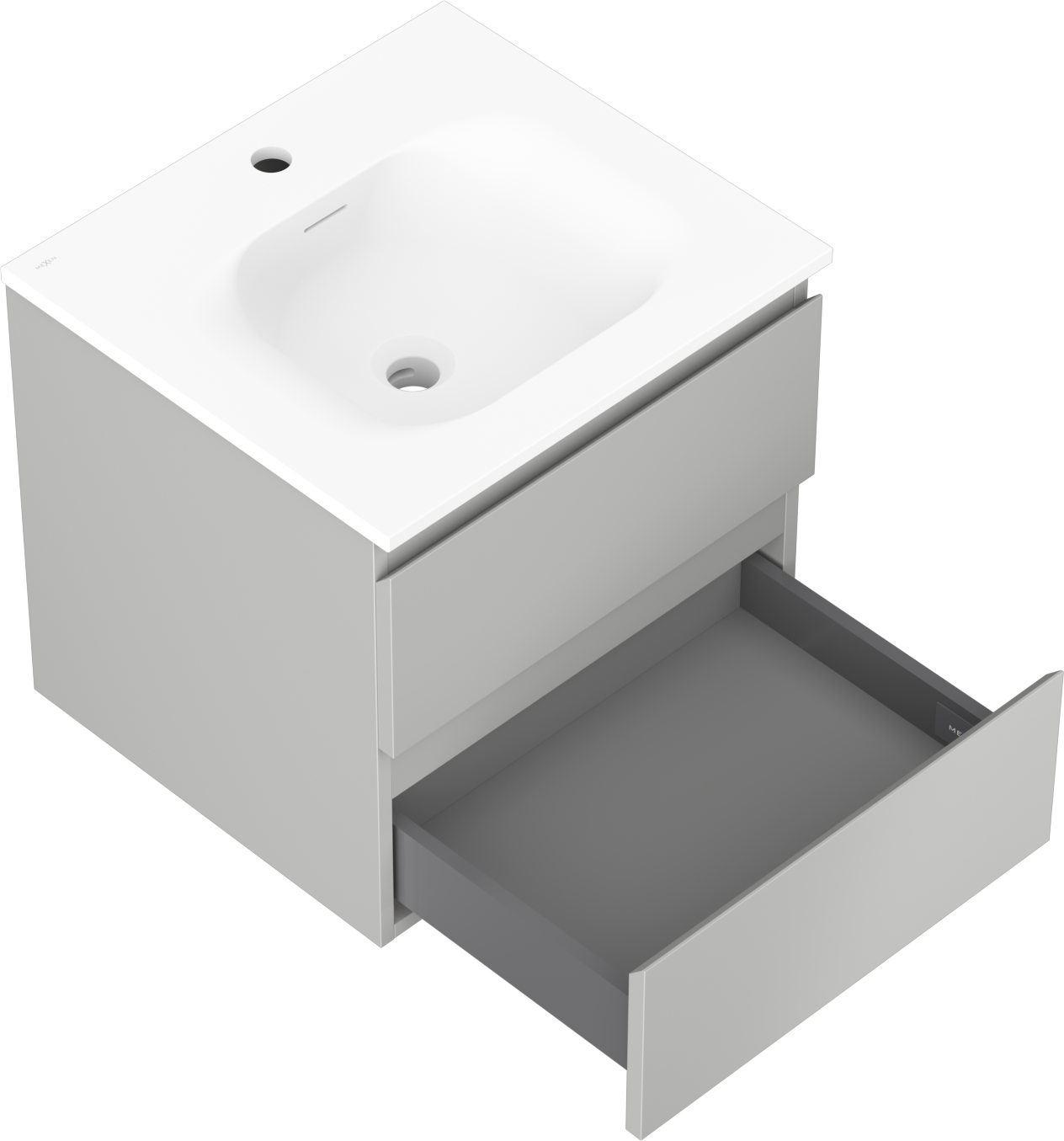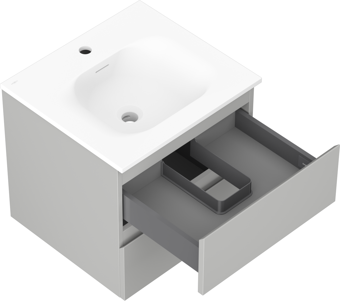 Utskärningen i lådan är utformad på ett sådant sätt att den rymmer vattenlåset som är nödvändigt i tvättställsinstallationer. Tack vare detta kan möbeln installeras fullt ut funktionellt, utan att behöva avstå från utrymme i lådan för installationen.