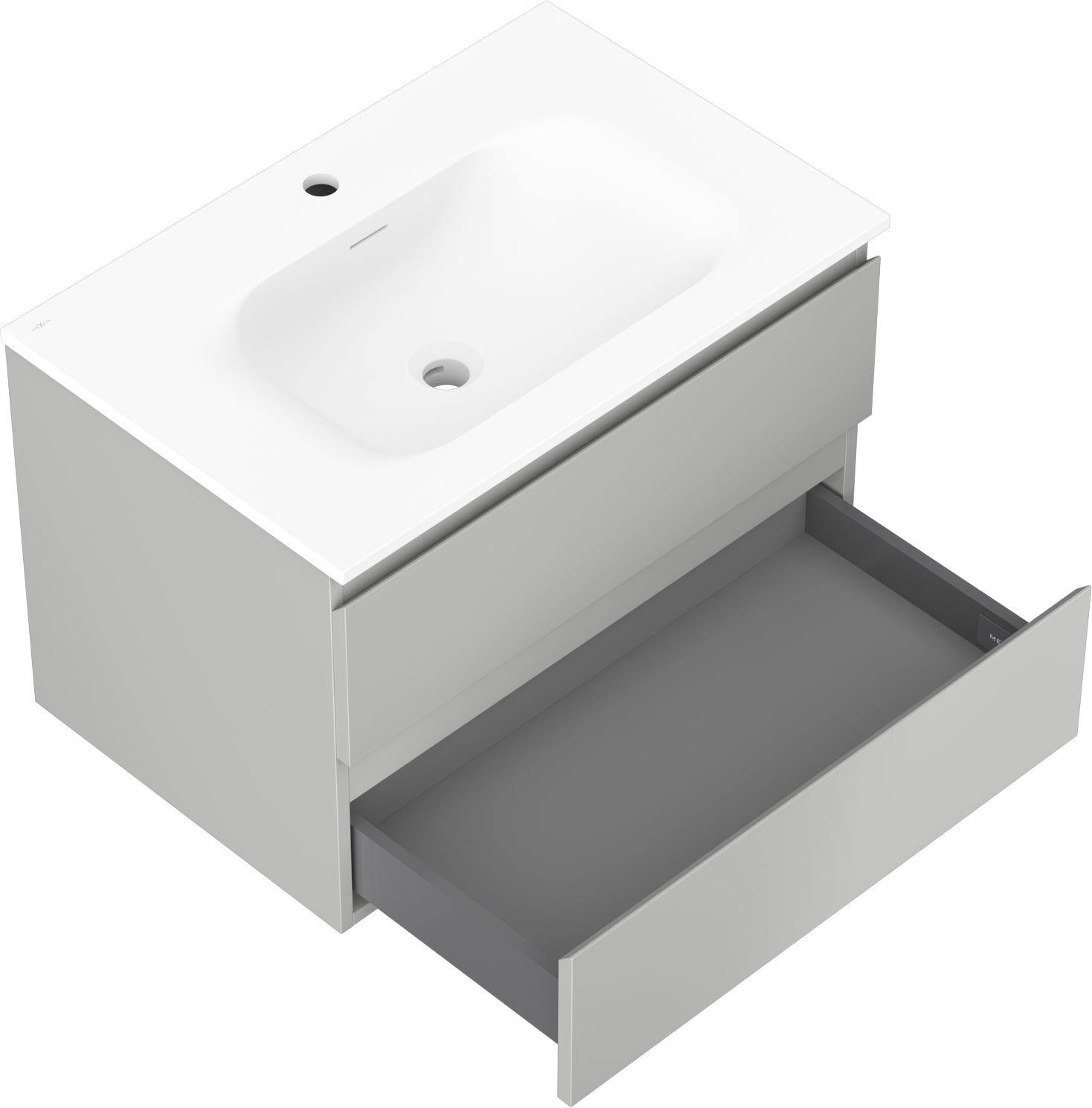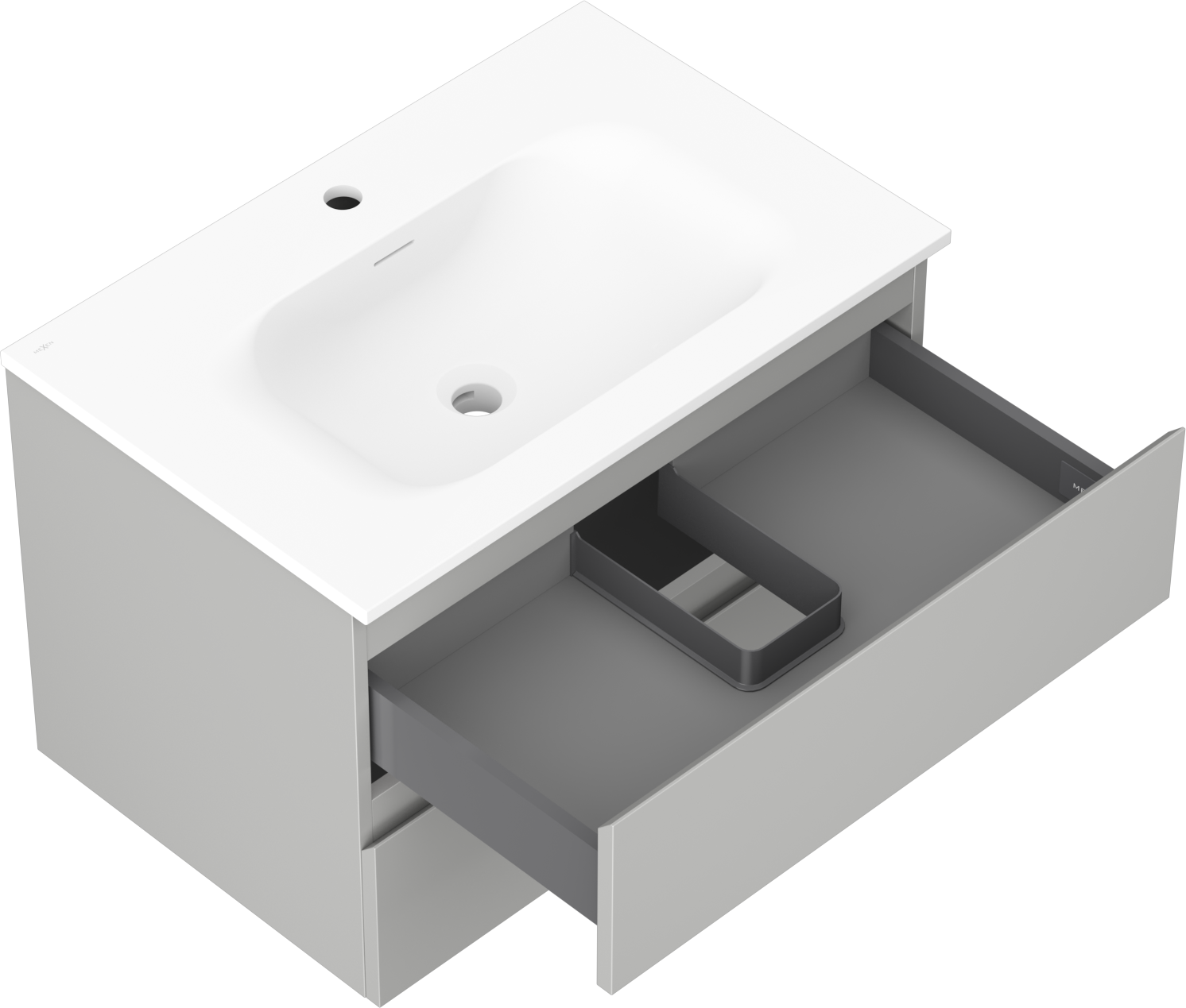 Utskärningen i lådan är utformad på ett sådant sätt att den rymmer vattenlåset som är nödvändigt i tvättställsinstallationer. Tack vare detta kan möbeln installeras fullt ut funktionellt, utan att behöva avstå från utrymme i lådan för installationen.