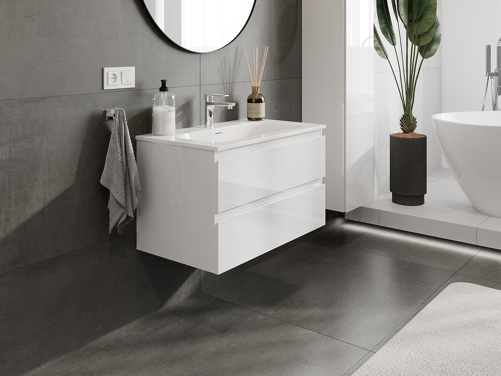 Våra modulära badrumsmöbler kan kombineras i olika färgkonfigurationer, vilket möjliggör fullständig personalisering. Du kan välja både utseende och funktioner för respektive delar, vilket gör att möblerna kan anpassas till dina egna stilistiska och funktionella preferenser.
