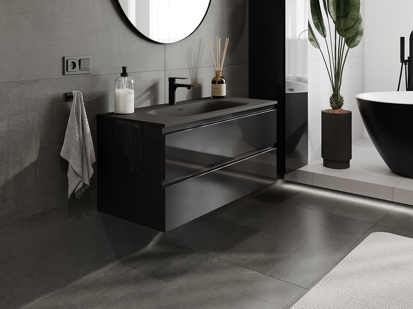 Våra modulära badrumsmöbler kan kombineras i olika färgkonfigurationer, vilket möjliggör fullständig personalisering. Du kan välja både utseende och funktioner för respektive delar, vilket gör att möblerna kan anpassas till dina egna stilistiska och funktionella preferenser.