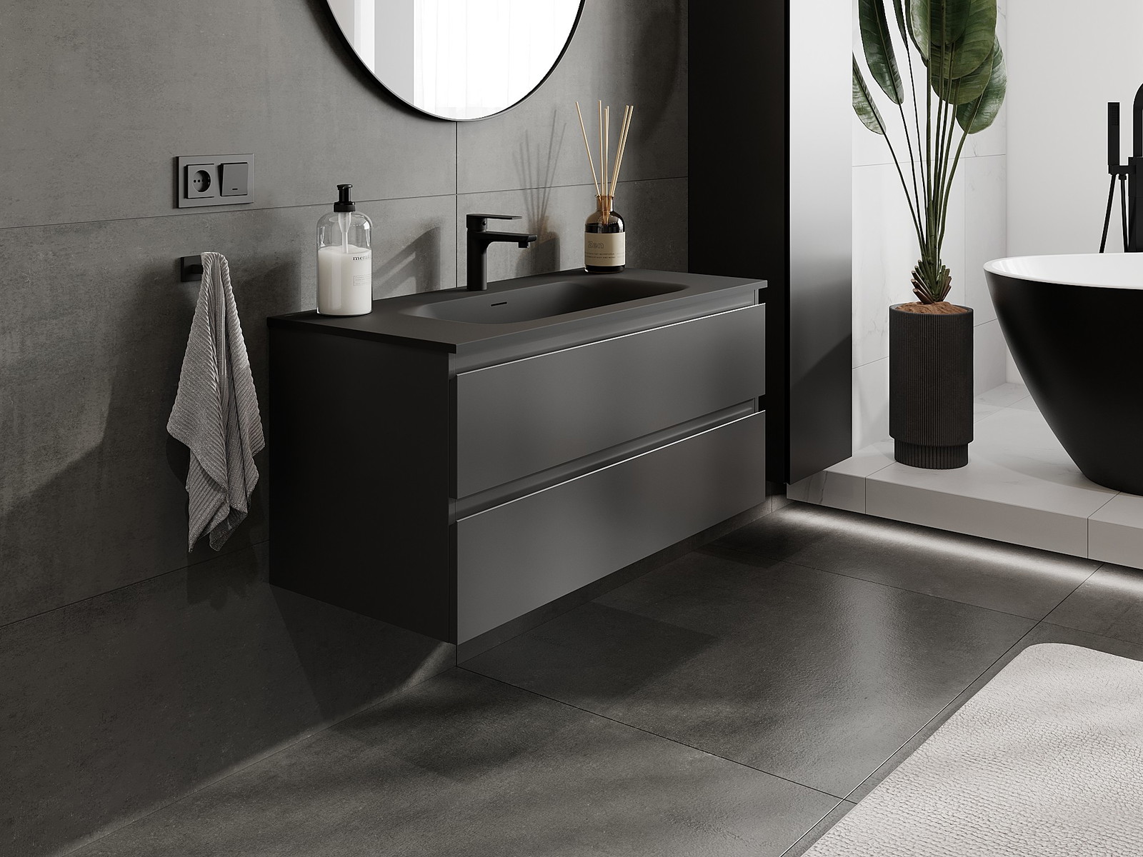 Våra modulära badrumsmöbler kan kombineras i olika färgkonfigurationer, vilket möjliggör fullständig personalisering. Du kan välja både utseende och funktioner för respektive delar, vilket gör att möblerna kan anpassas till dina egna stilistiska och funktionella preferenser.