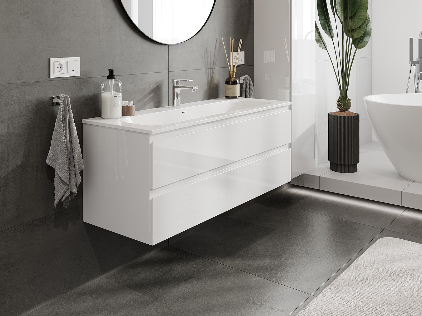 Våra modulära badrumsmöbler kan kombineras i olika färgkonfigurationer, vilket möjliggör fullständig personalisering. Du kan välja både utseende och funktioner för respektive delar, vilket gör att möblerna kan anpassas till dina egna stilistiska och funktionella preferenser.