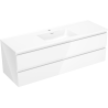 Utskärningen i lådan är utformad på ett sådant sätt att den rymmer vattenlåset som är nödvändigt i tvättställsinstallationer. Tack vare detta kan möbeln installeras fullt ut funktionellt, utan att behöva avstå från utrymme i lådan för installationen.