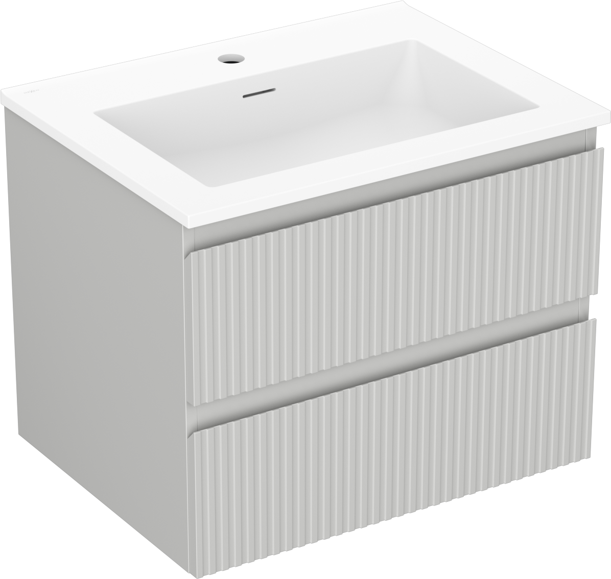 Mexen Rivel badrumsskåp 60 cm med tvättställ Otis, 2 lådor, räfflad, grå matt/vit matt - 91A20-06047-2-BFF62-W18M01