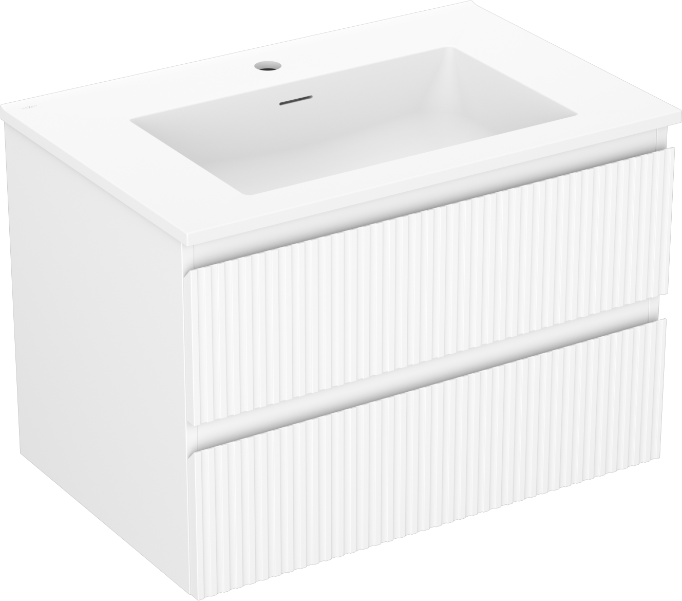 Mexen Rivel badrumsskåp 70 cm med handfat Otis, 2 lådor, räfflad, vit matt - 91A20-07047-2-BFF01-W18M01
