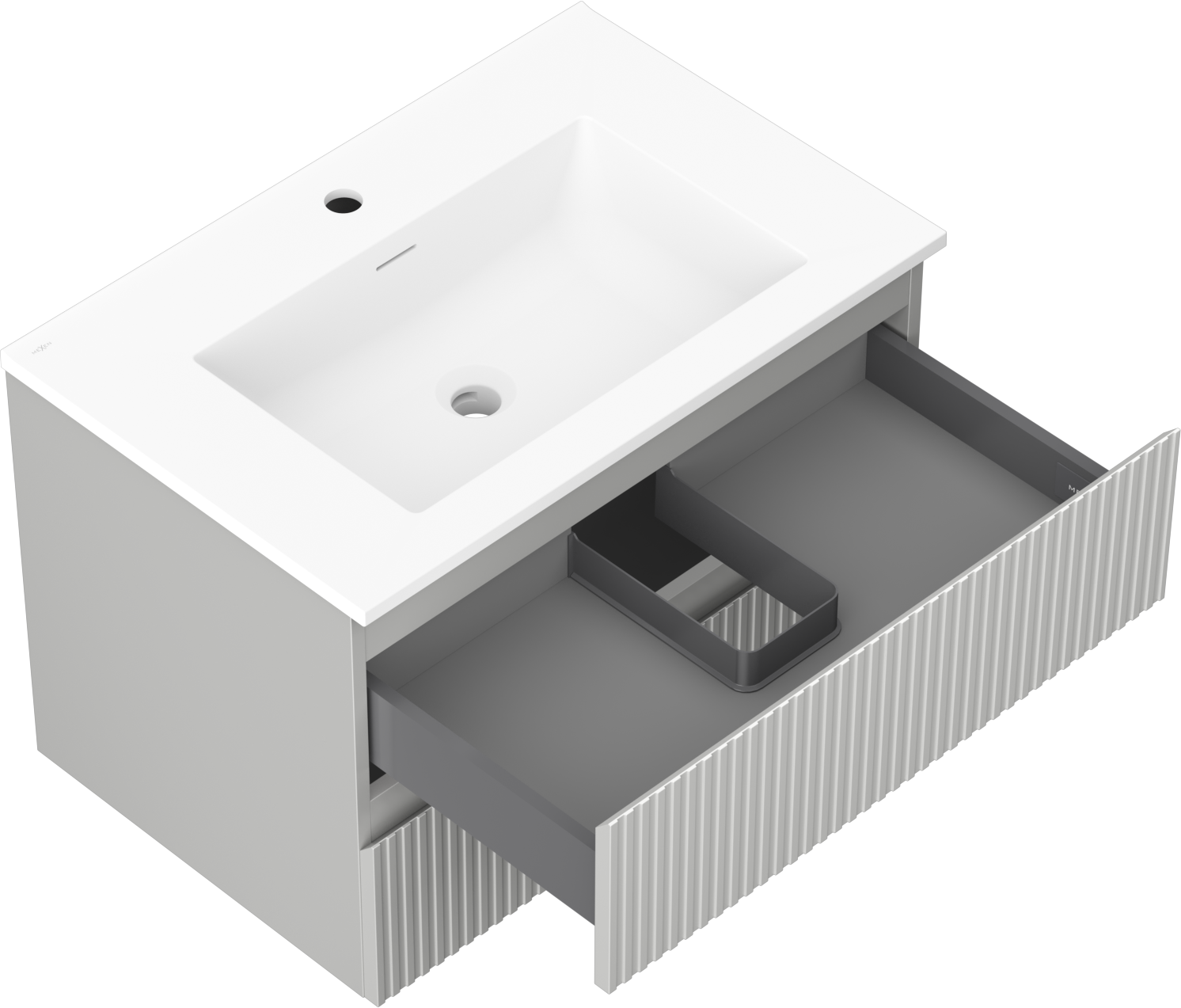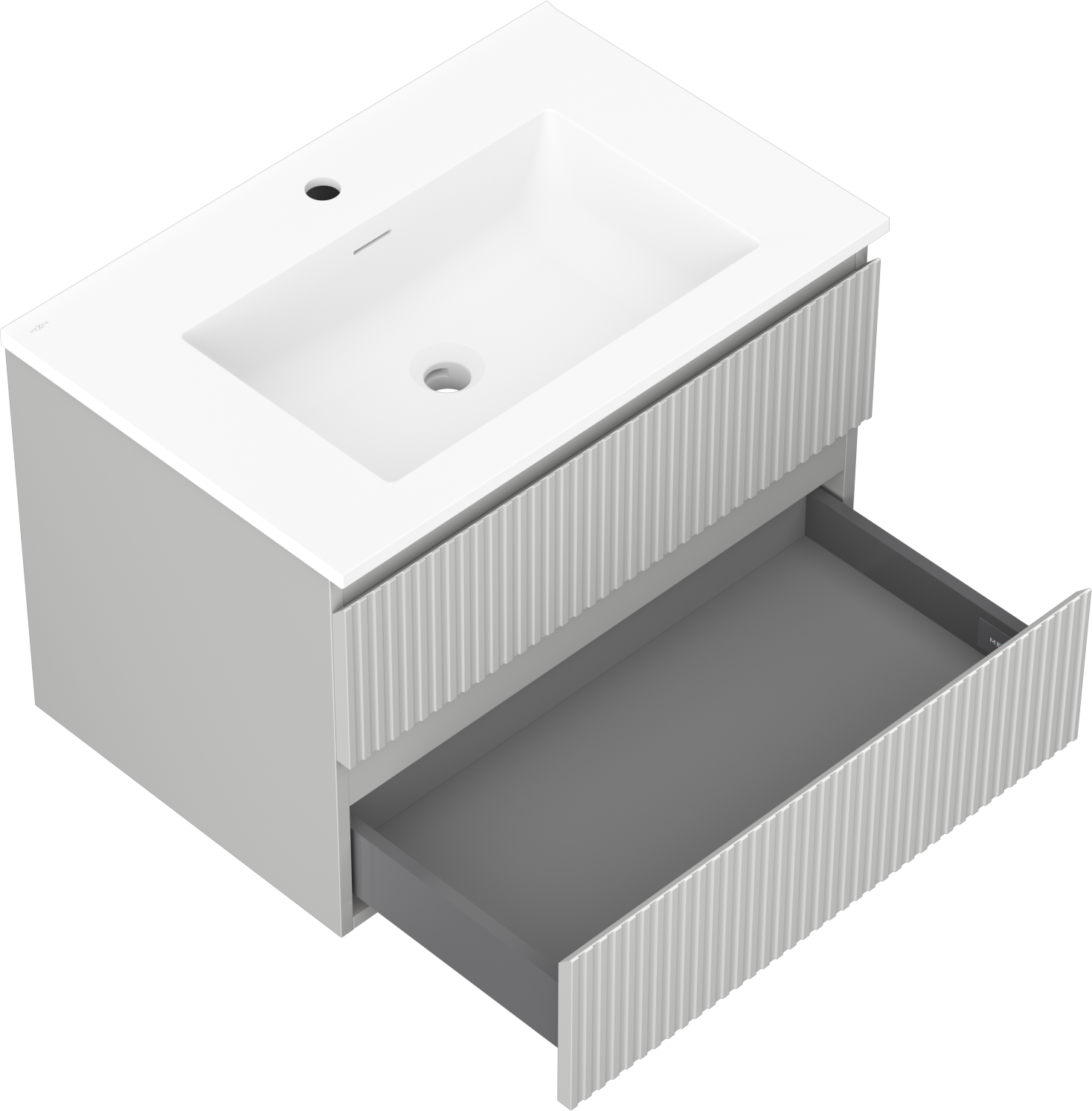Mexen Rivel 70 cm badrumsskåp med handfat Otis, 2 lådor, räfflad, grå matt/vit matt - 91A20-07047-2-BFF62-W18M01