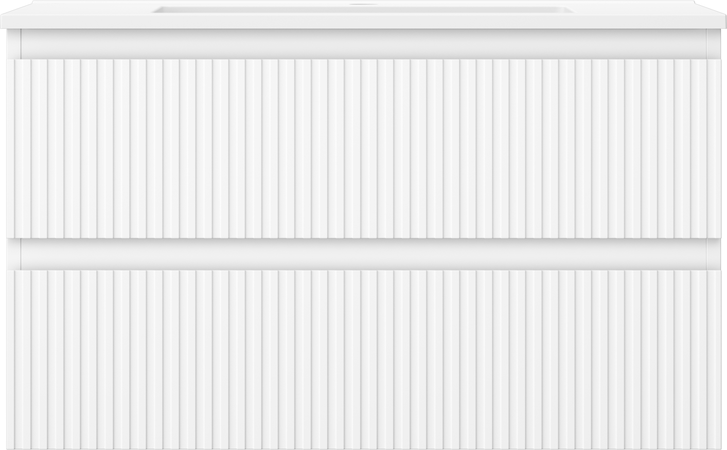 Mexen Rivel badrumsskåp 80 cm med handfat Otis, 2 lådor, räfflat, vit matt - 91A20-08047-2-BFF01-W18M01