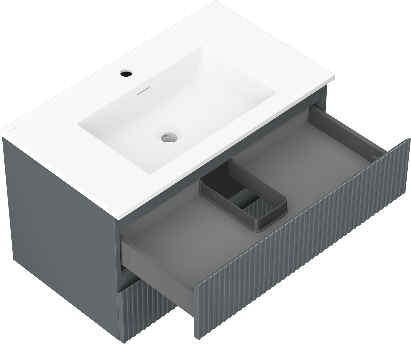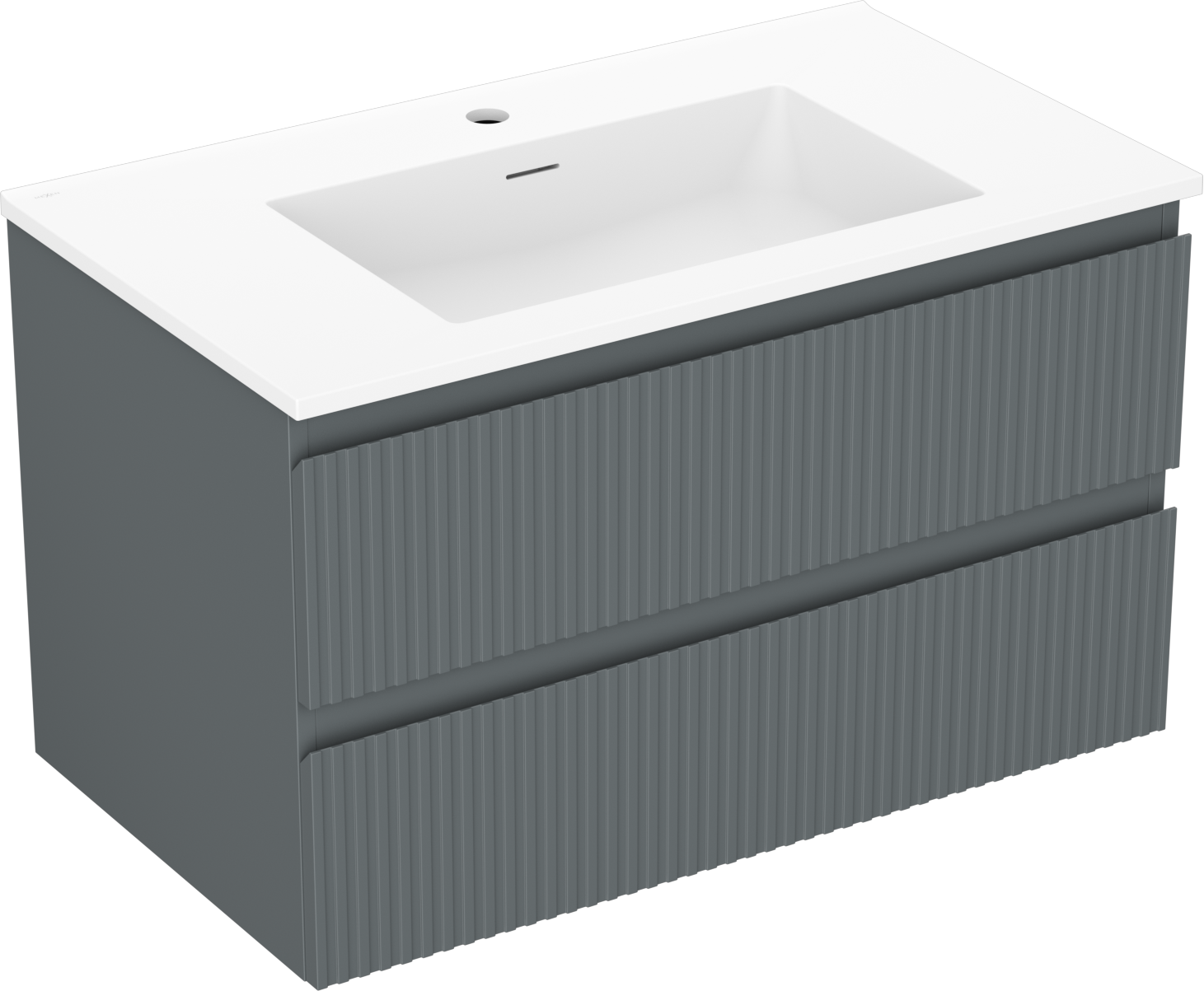 Mexen Rivel badrumsskåp 80 cm med tvättställ Otis, 2 lådor, räfflad, grafit matt/vit matt - 91A20-08047-2-BFF66-W18M0