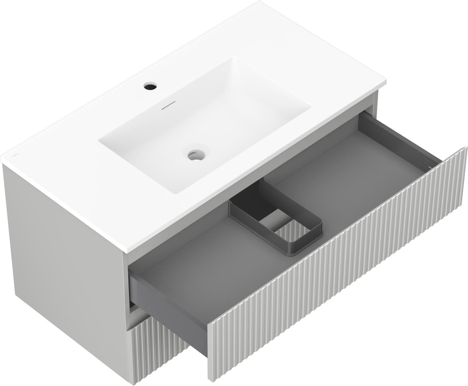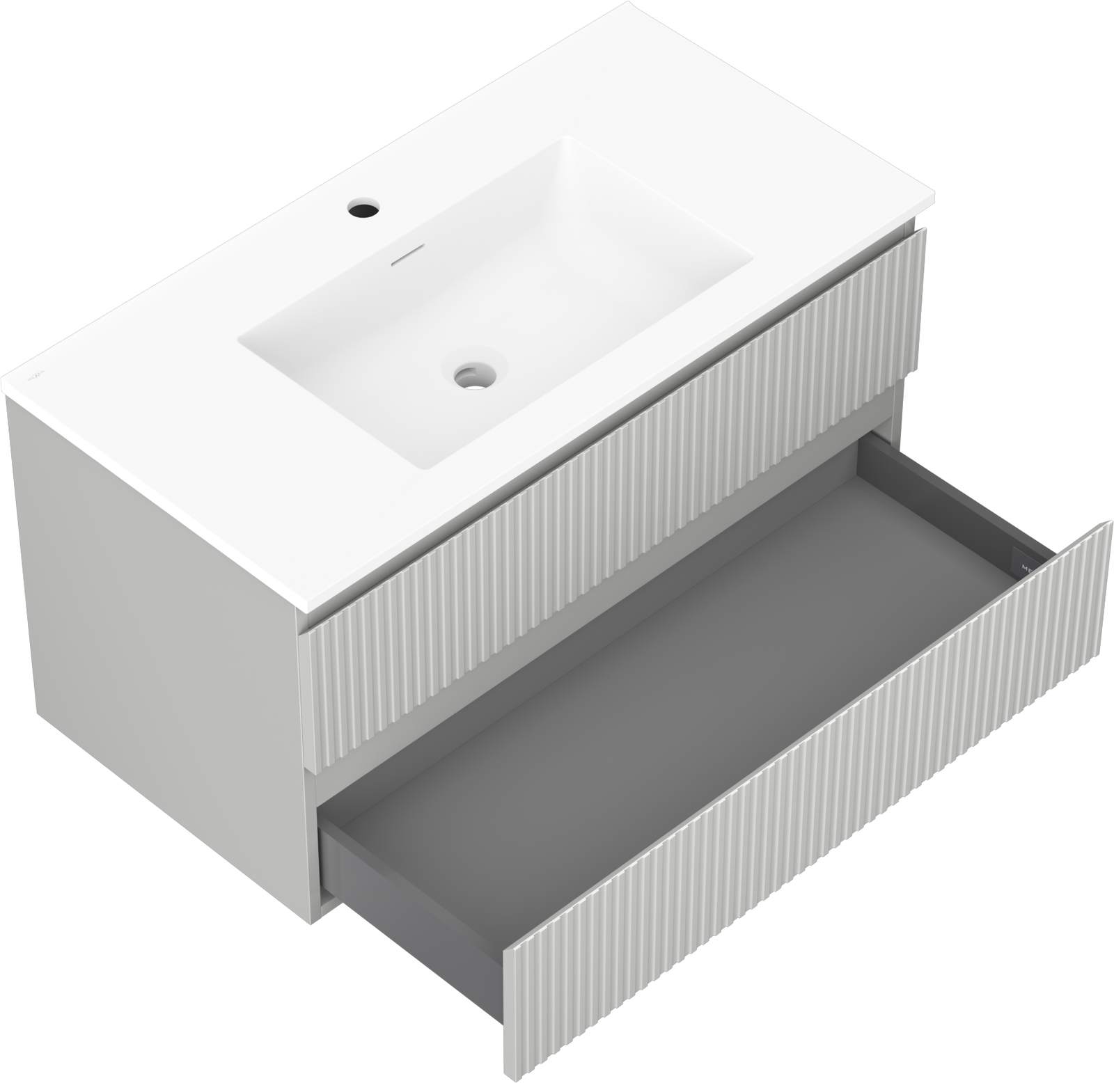 Mexen Rivel badrumsskåp 90 cm med tvättställ Otis, 2 lådor, räfflad, grå matt/vit matt - 91A20-09047-2-BFF62-W18M01