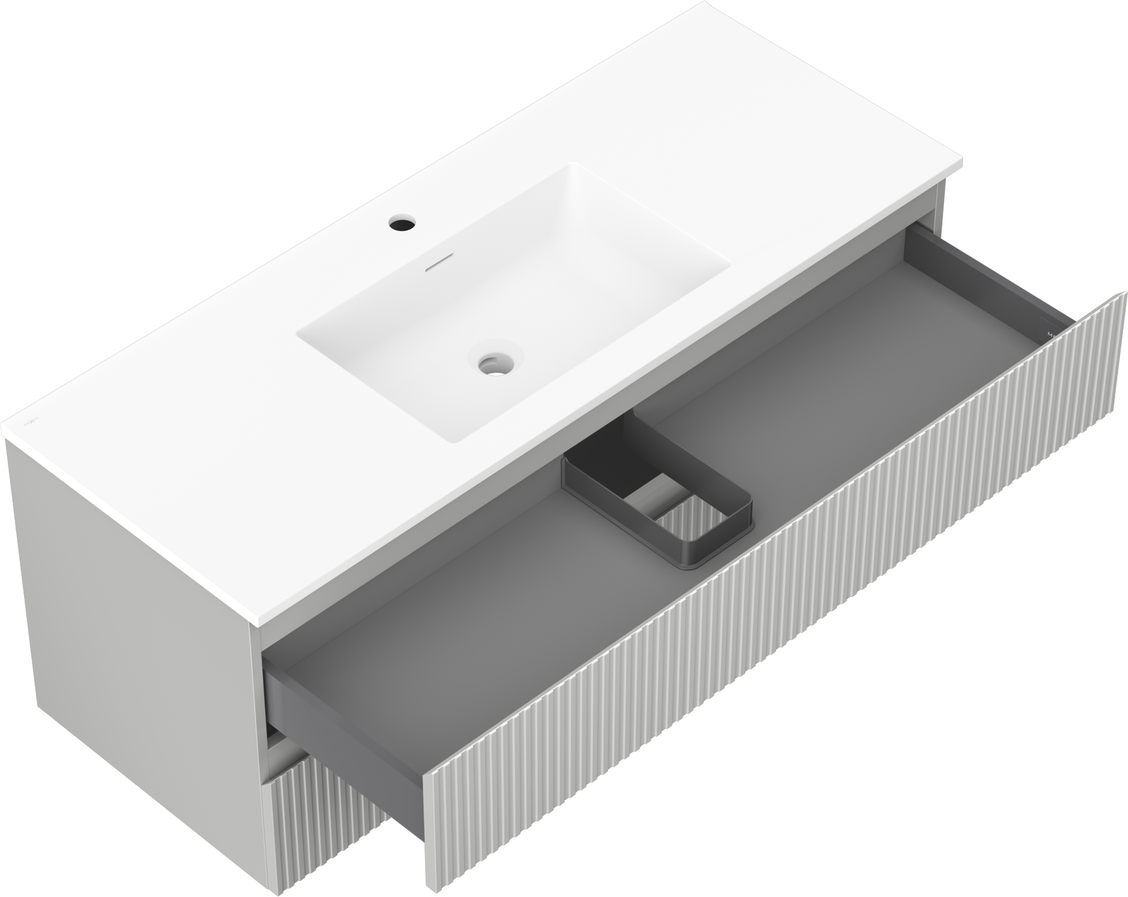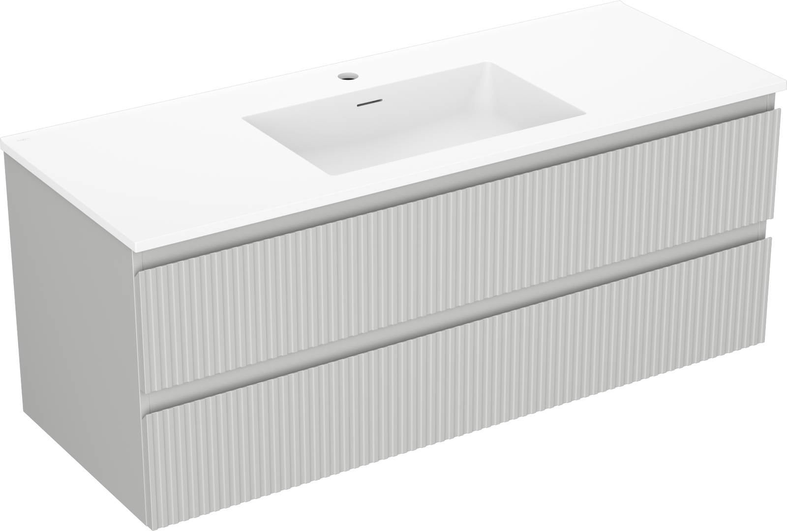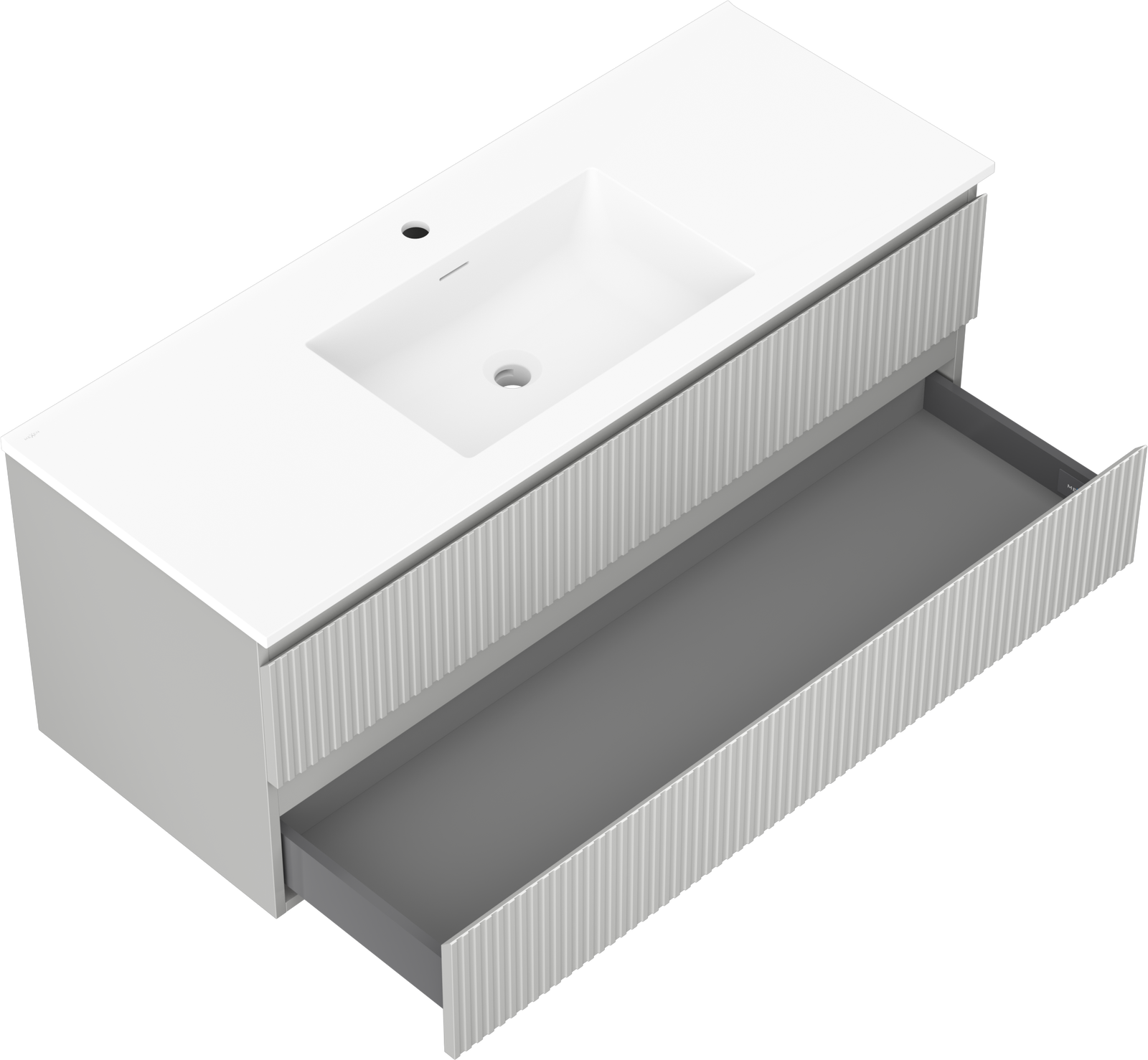 Mexen Rivel badrumsskåp 120 cm med handfat Otis, 2 lådor, räfflad, grå matt/vit matt - 91A20-12047-2-BFF62-W18M0