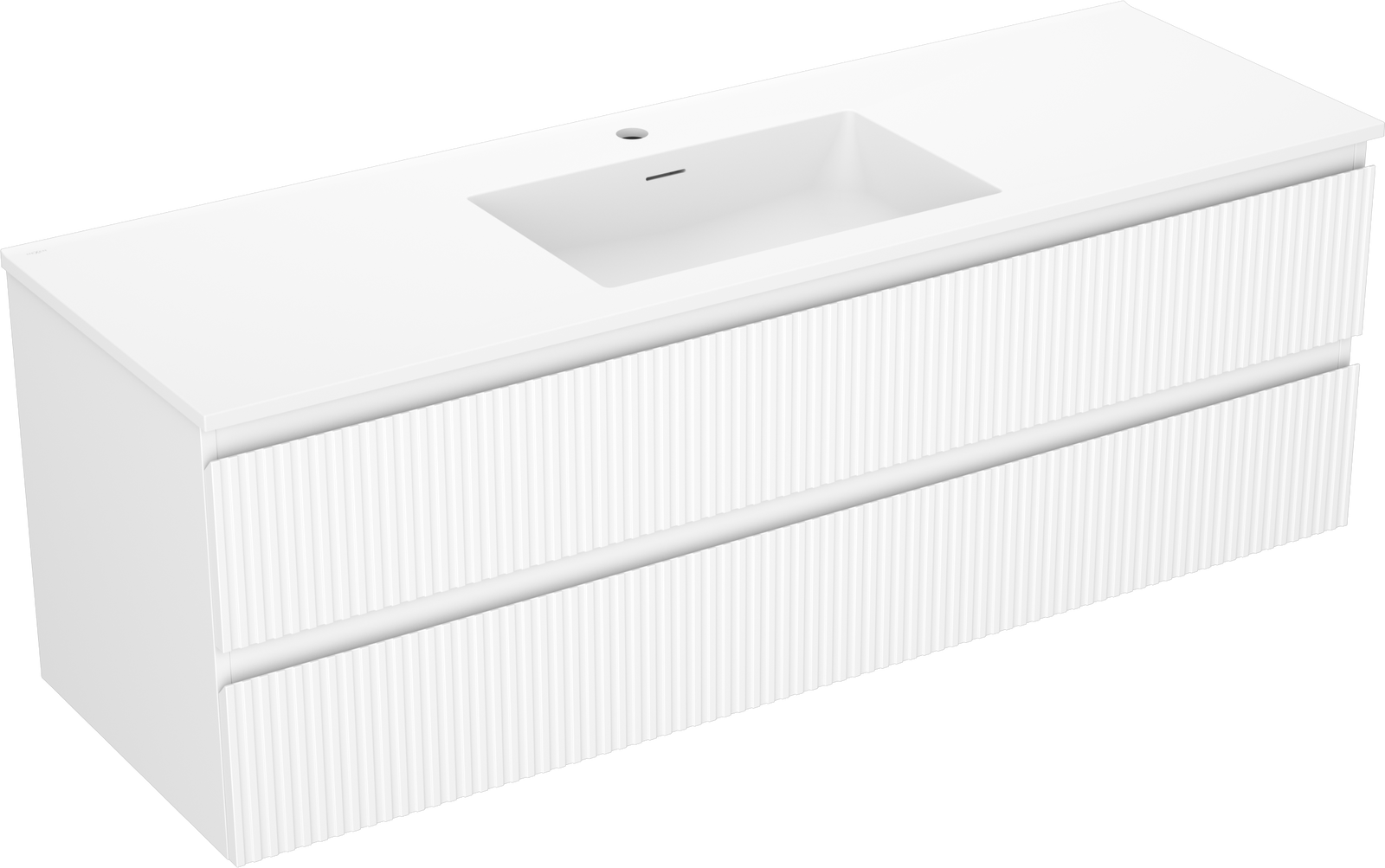 Mexen Rivel badrumsskåp 140 cm med handfat Otis, 2 lådor, räfflad, vit matt - 91A20-14047-2-BFF01-W18M01