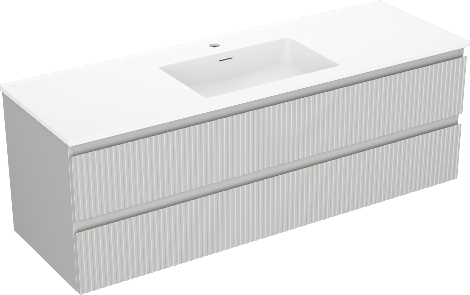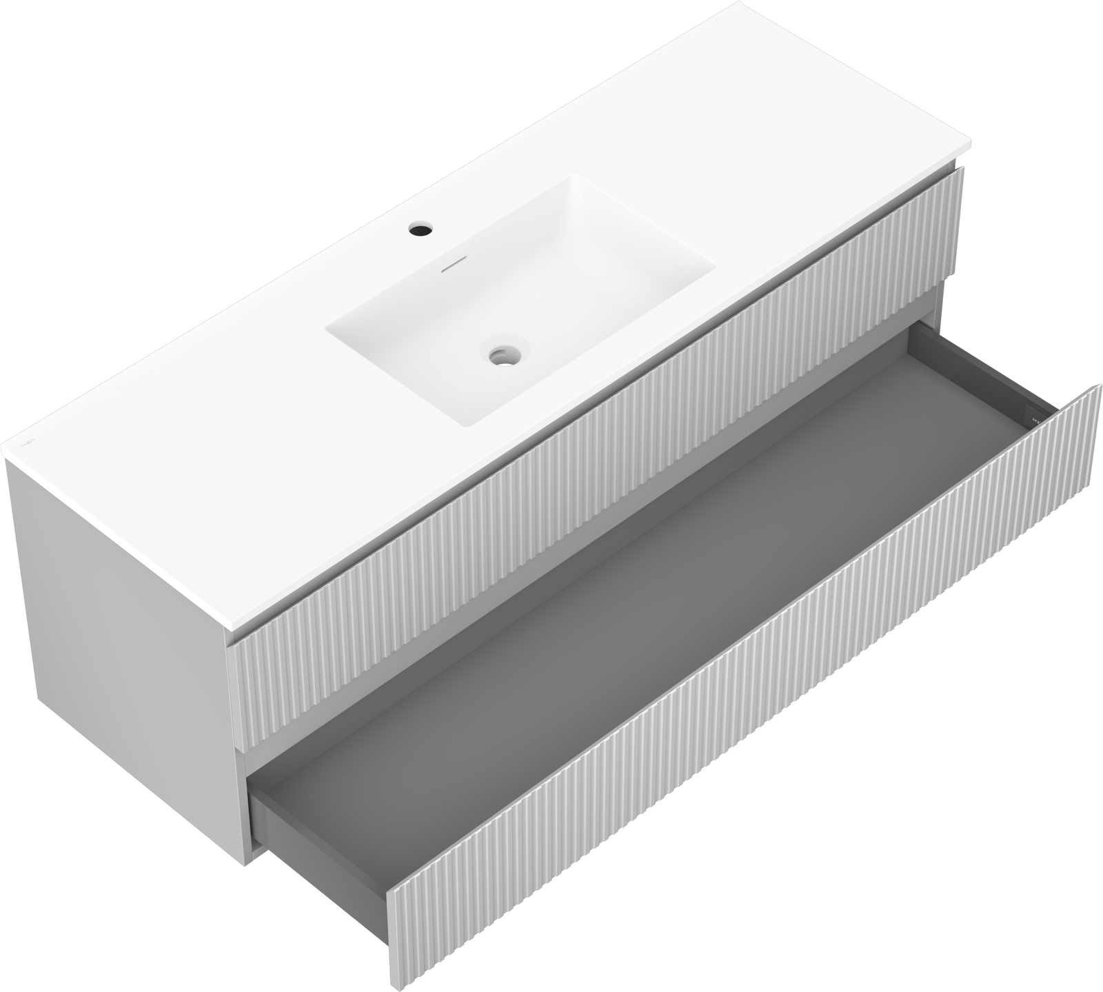 Mexen Rivel badrumsskåp 140 cm med handfat Otis, 2 lådor, räfflad, grå matt/vit matt - 91A20-14047-2-BFF62-W18M0