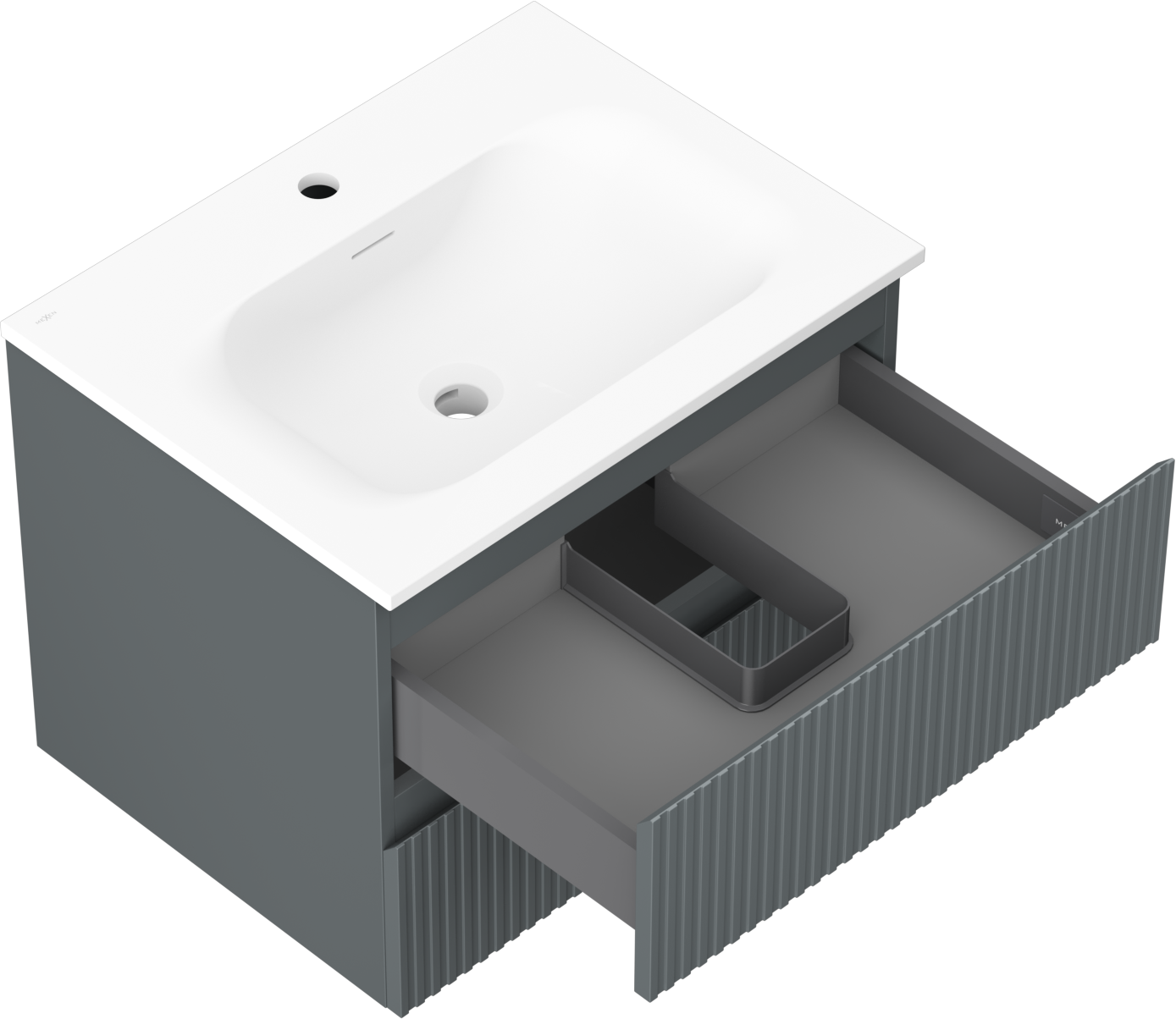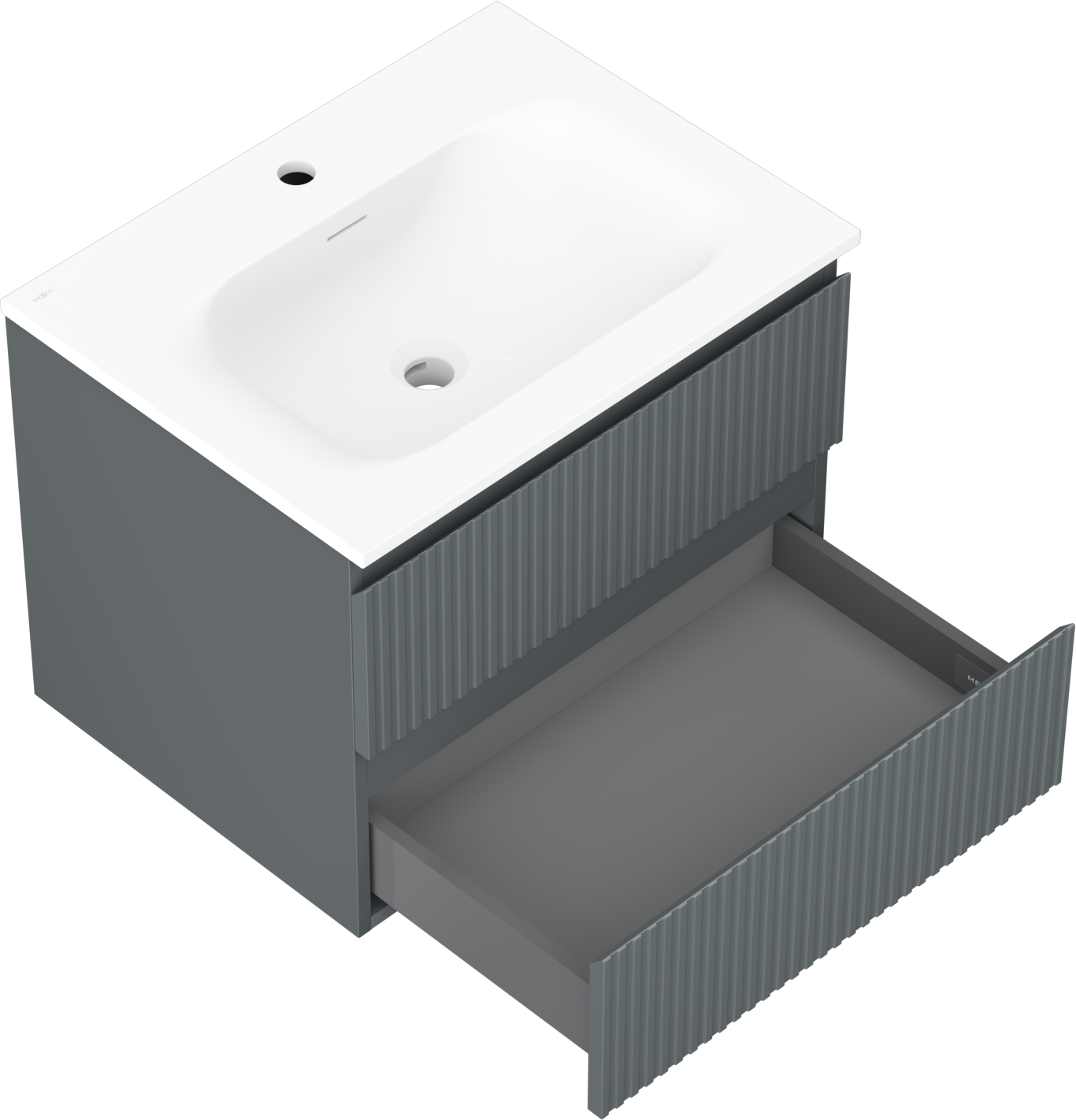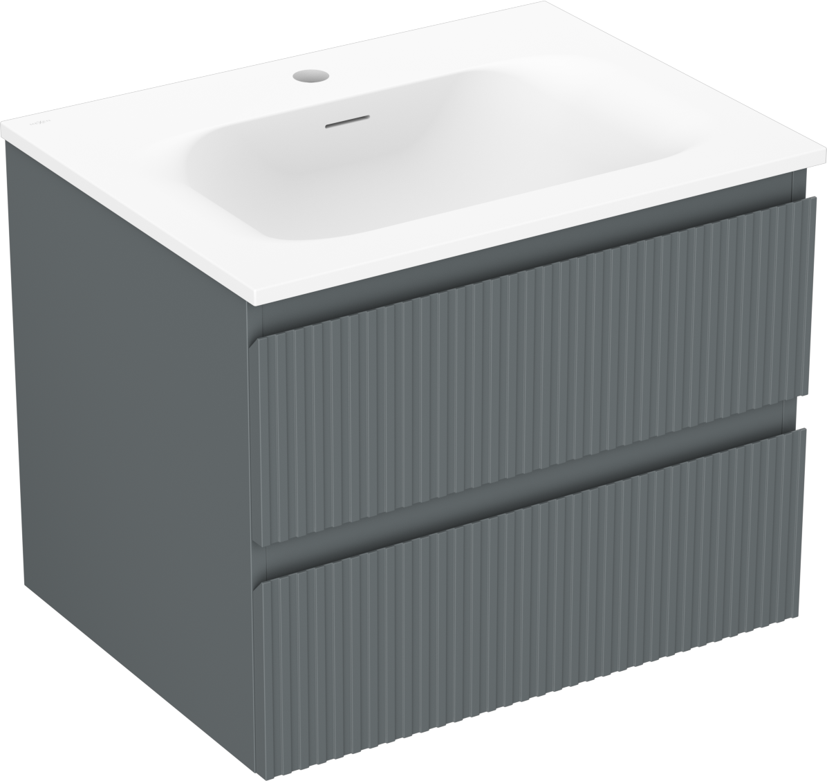 Mexen Rivel badrumsskåp 60 cm med tvättställ Vela, 2 lådor, räfflad, grafit matt/vit matt - 91A20-06047-2-BFF66-W23M0