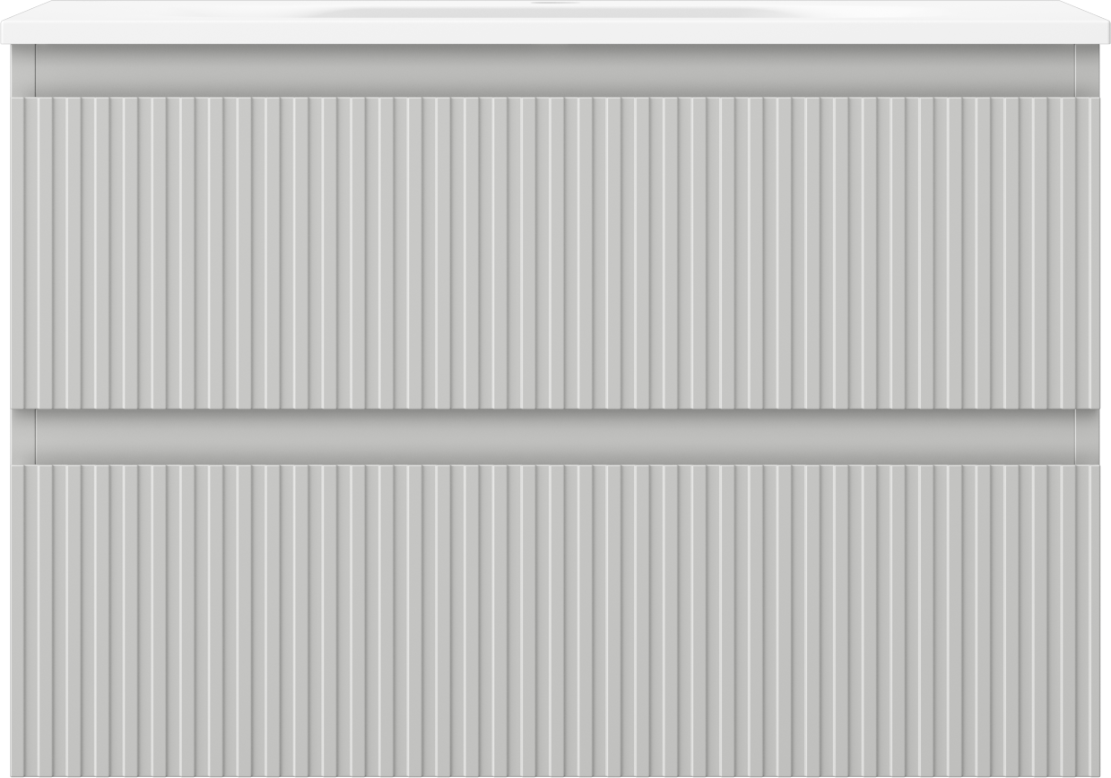 Mexen Rivel badrumsskåp 70 cm med tvättställ Vela, 2 lådor, räfflad, grå matt/vit matt - 91A20-07047-2-BFF62-W23M01