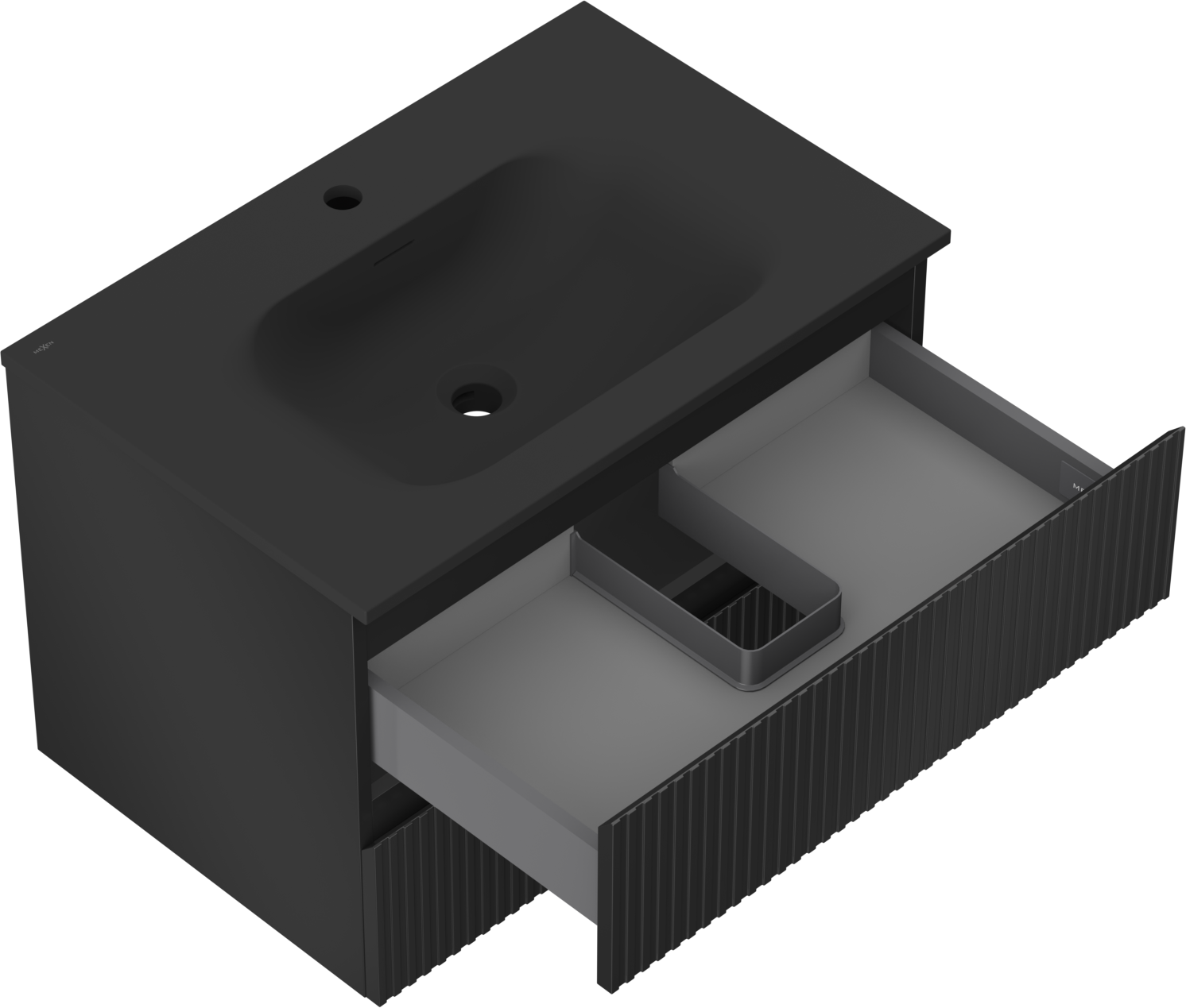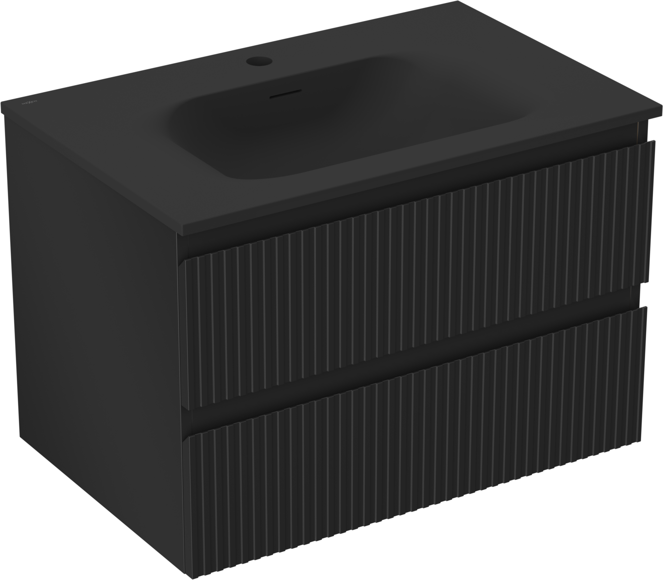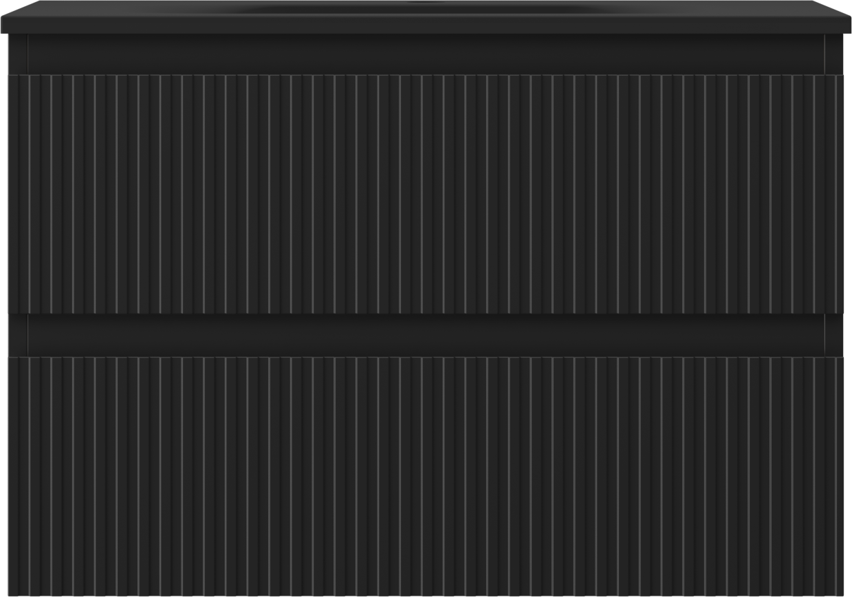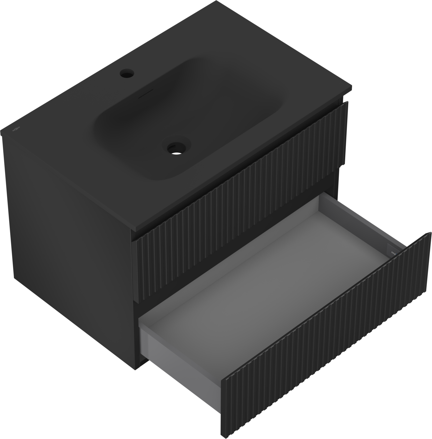 Mexen Rivel badrumsskåp 70 cm med handfat Vela, 2 lådor, räfflad, svart matt - 91A20-07047-2-BFF71-W23M71