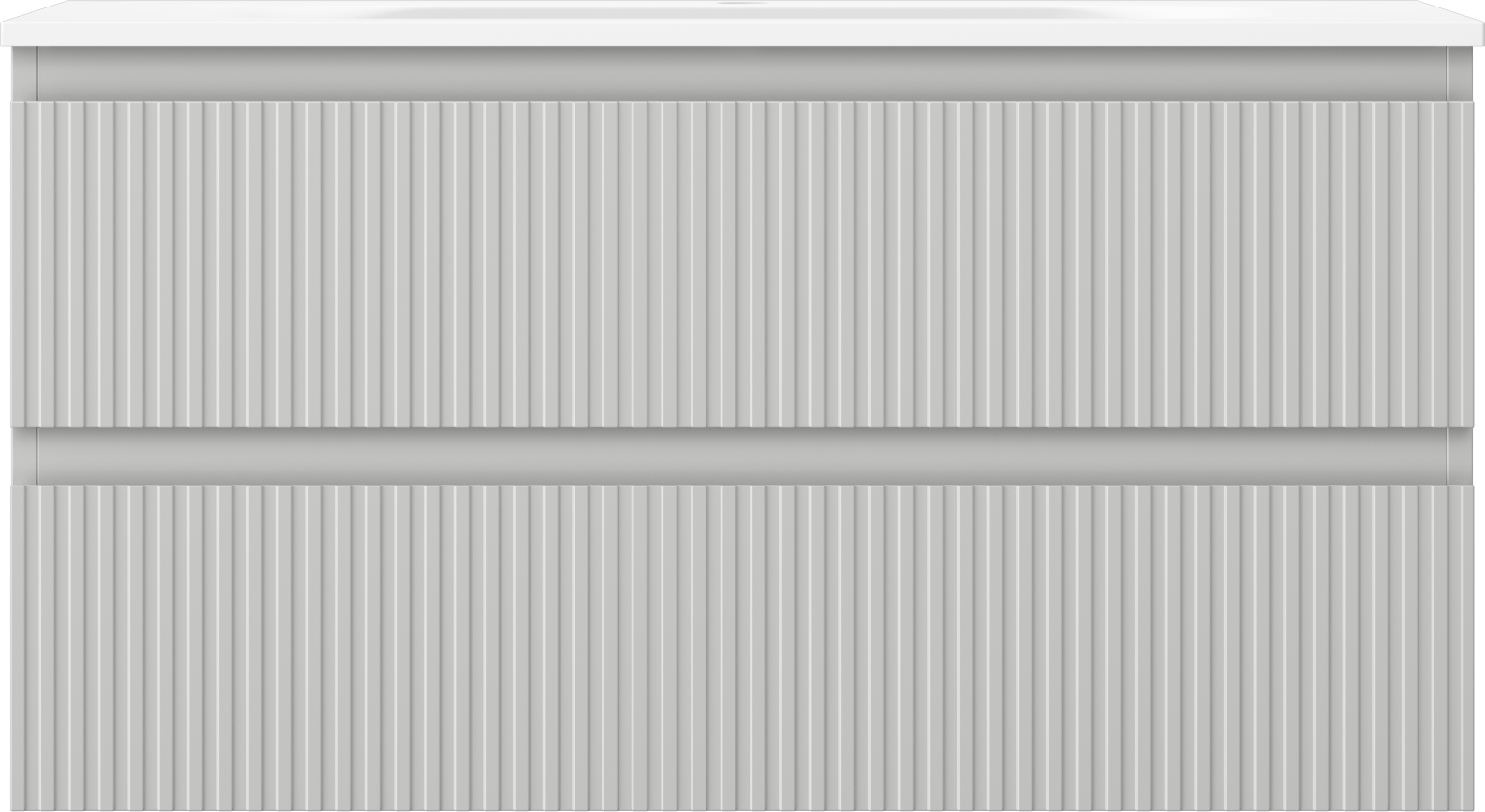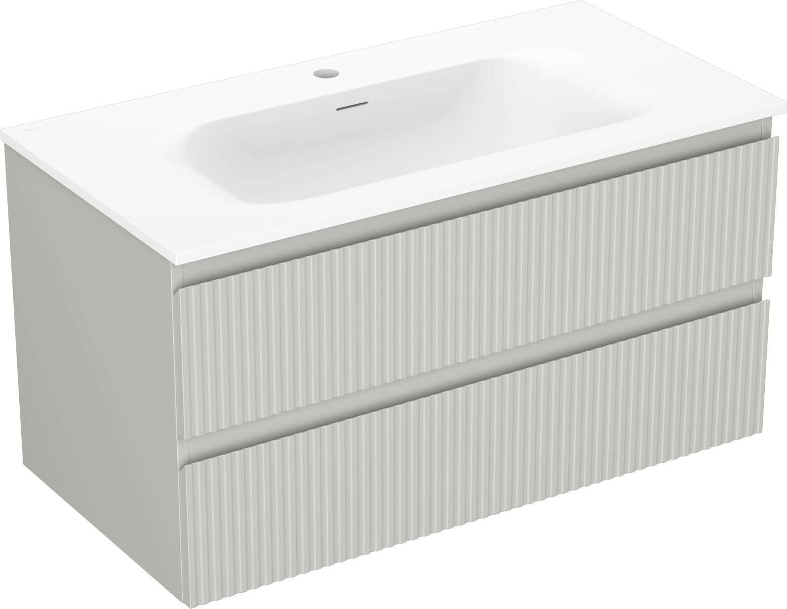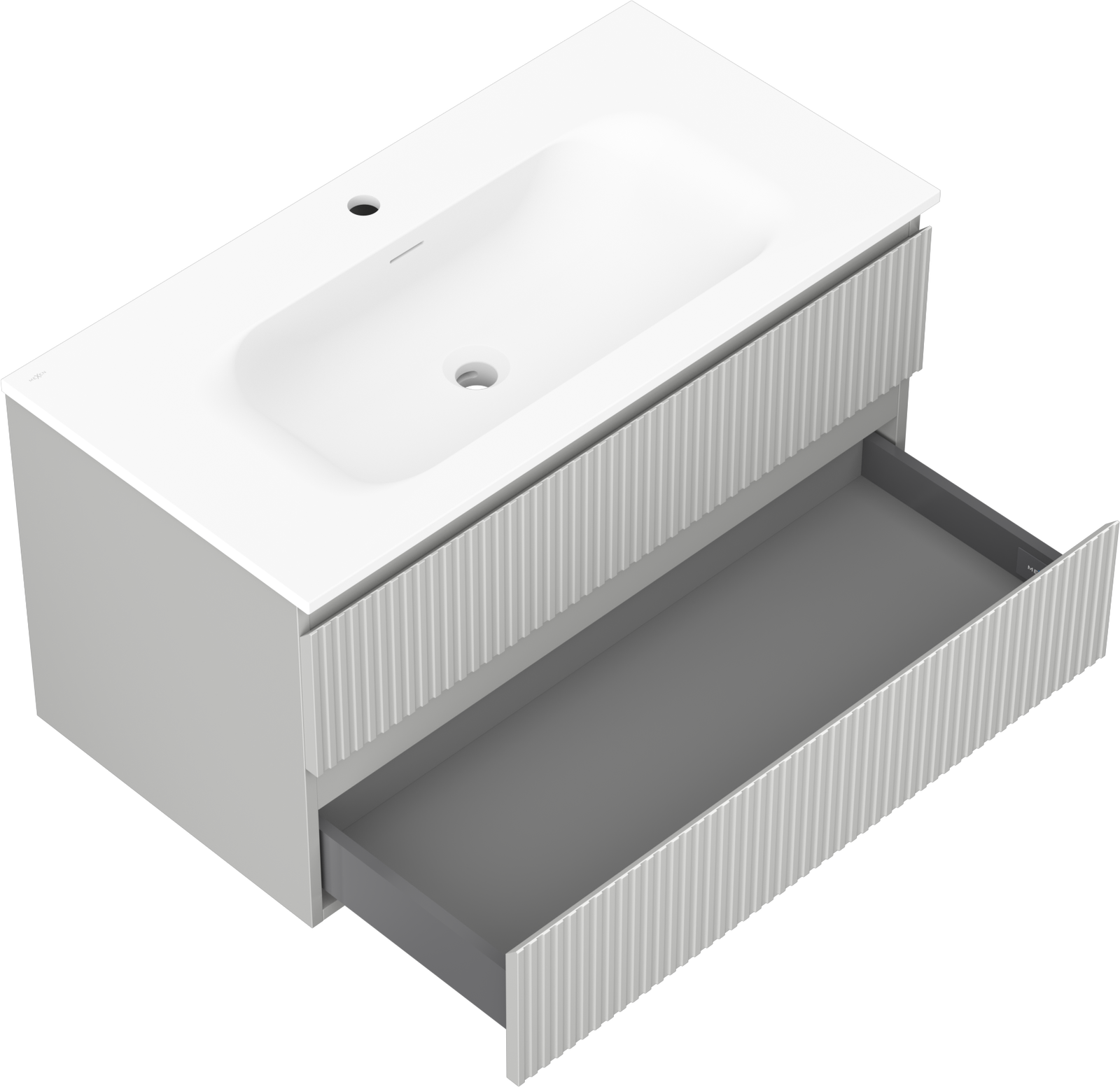 Mexen Rivel badrumsskåp 90 cm med handfat Vela, 2 lådor, räfflad, grå matt/vit matt - 91A20-09047-2-BFF62-W23M01
