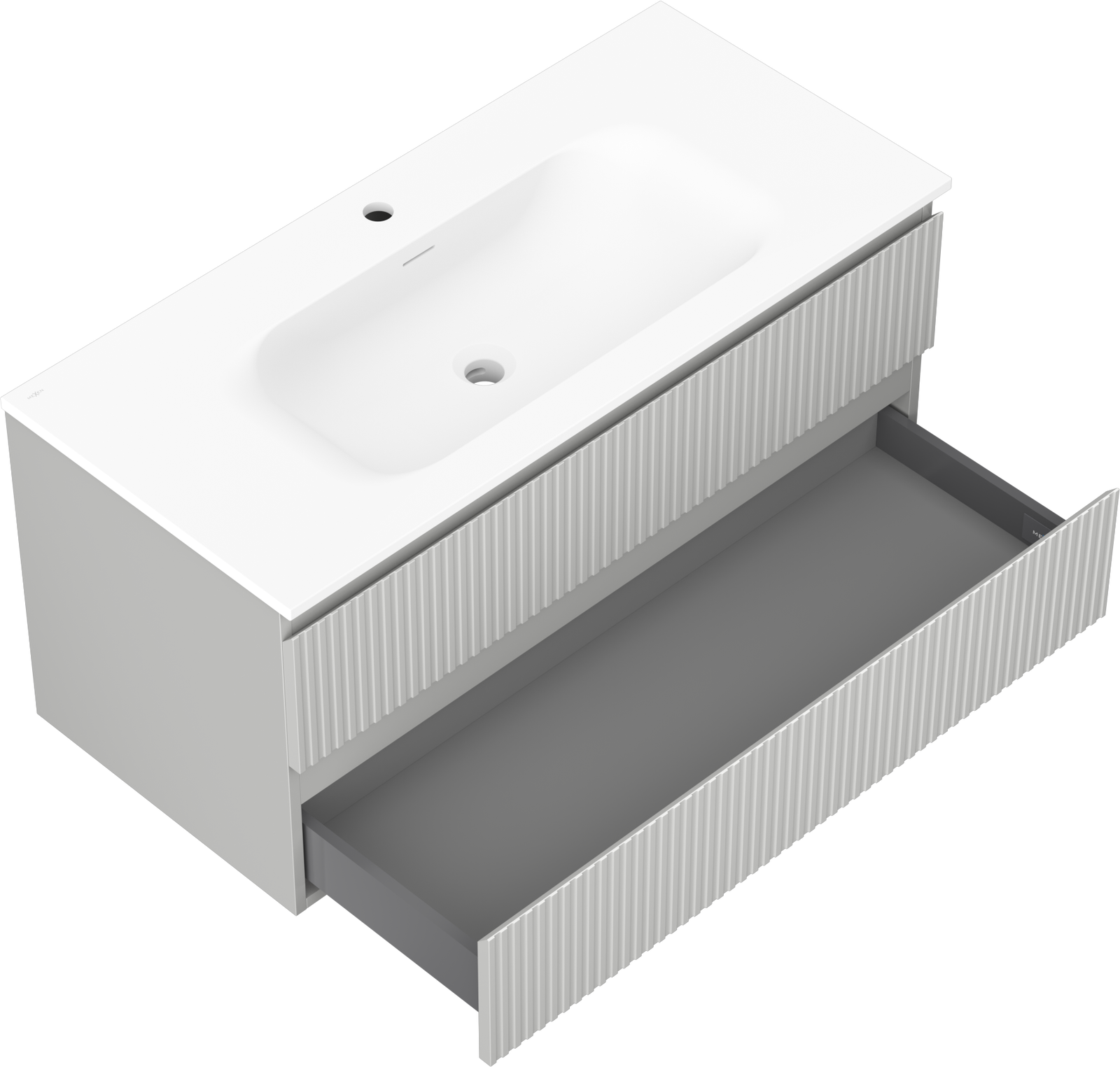 Mexen Rivel badrumsskåp 100 cm med tvättställ Vela, 2 lådor, räfflad, grå matt/vit matt - 91A20-10047-2-BFF62-W23M01