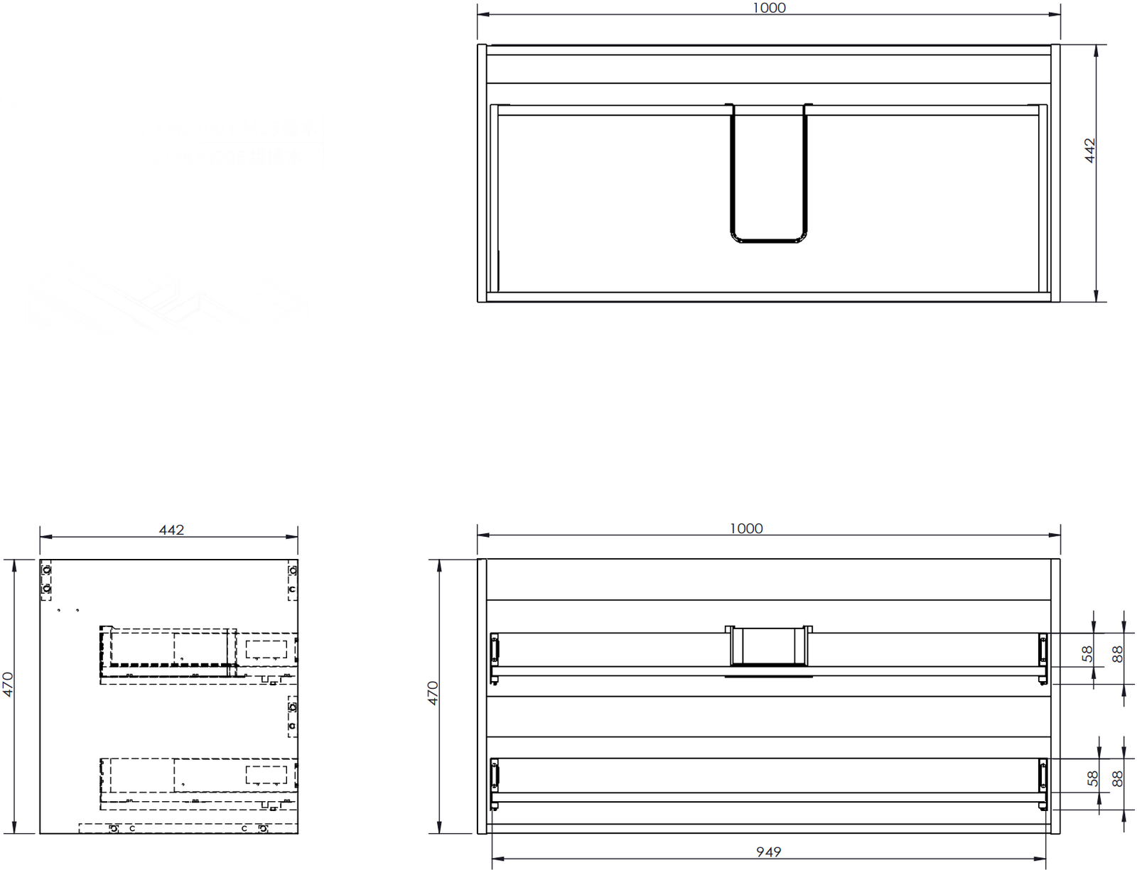 Utskärningen i lådan är utformad på ett sådant sätt att den rymmer vattenlåset som är nödvändigt i tvättställsinstallationer. Tack vare detta kan möbeln installeras fullt ut funktionellt, utan att behöva avstå från utrymme i lådan för installationen.