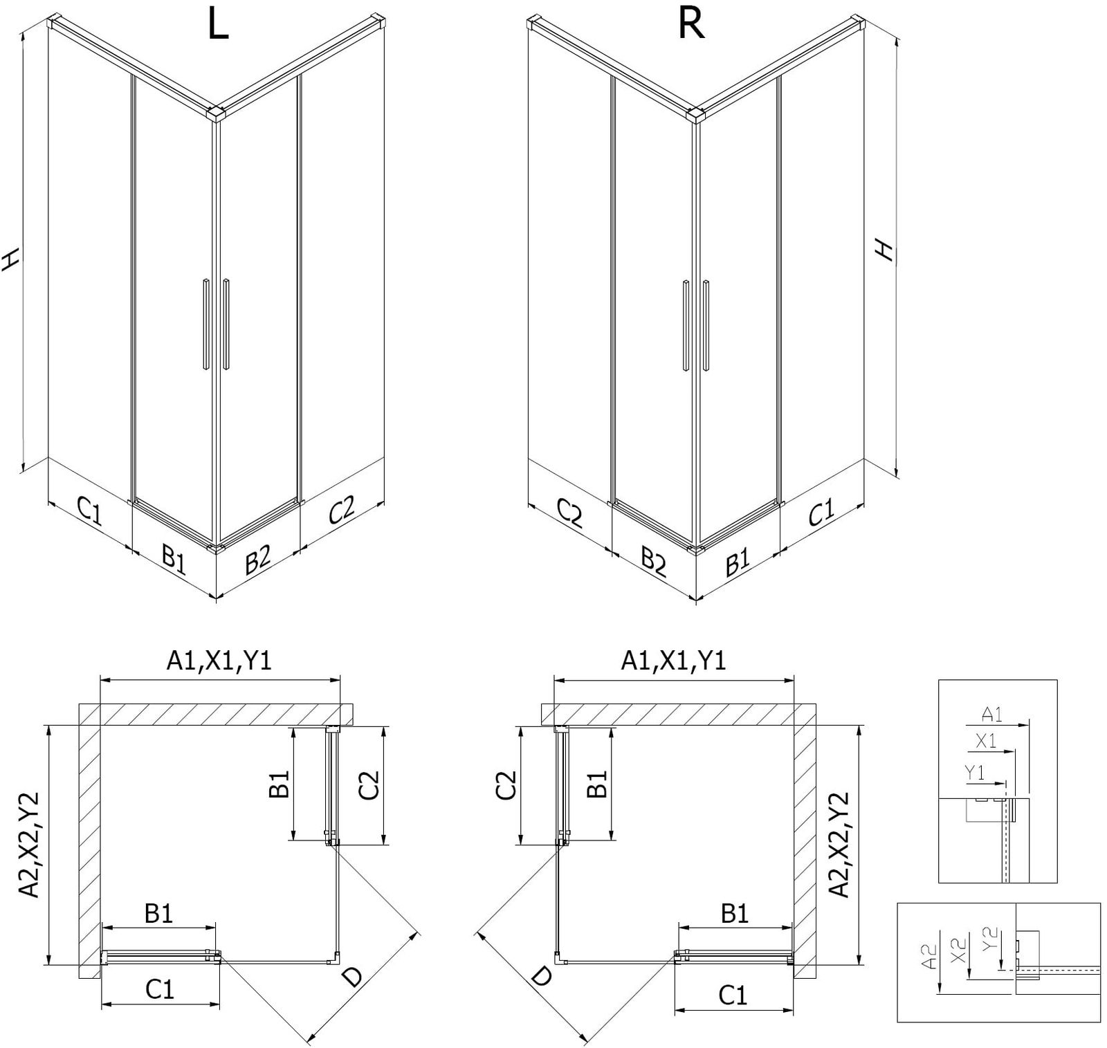 Tack vare användningen av ett universellt monteringssystem kan duschdörrarna monteras på höger eller vänster sida beroende på behov. Detta gör att du enkelt kan designa en dusch som är anpassad till badrummets utrymme.