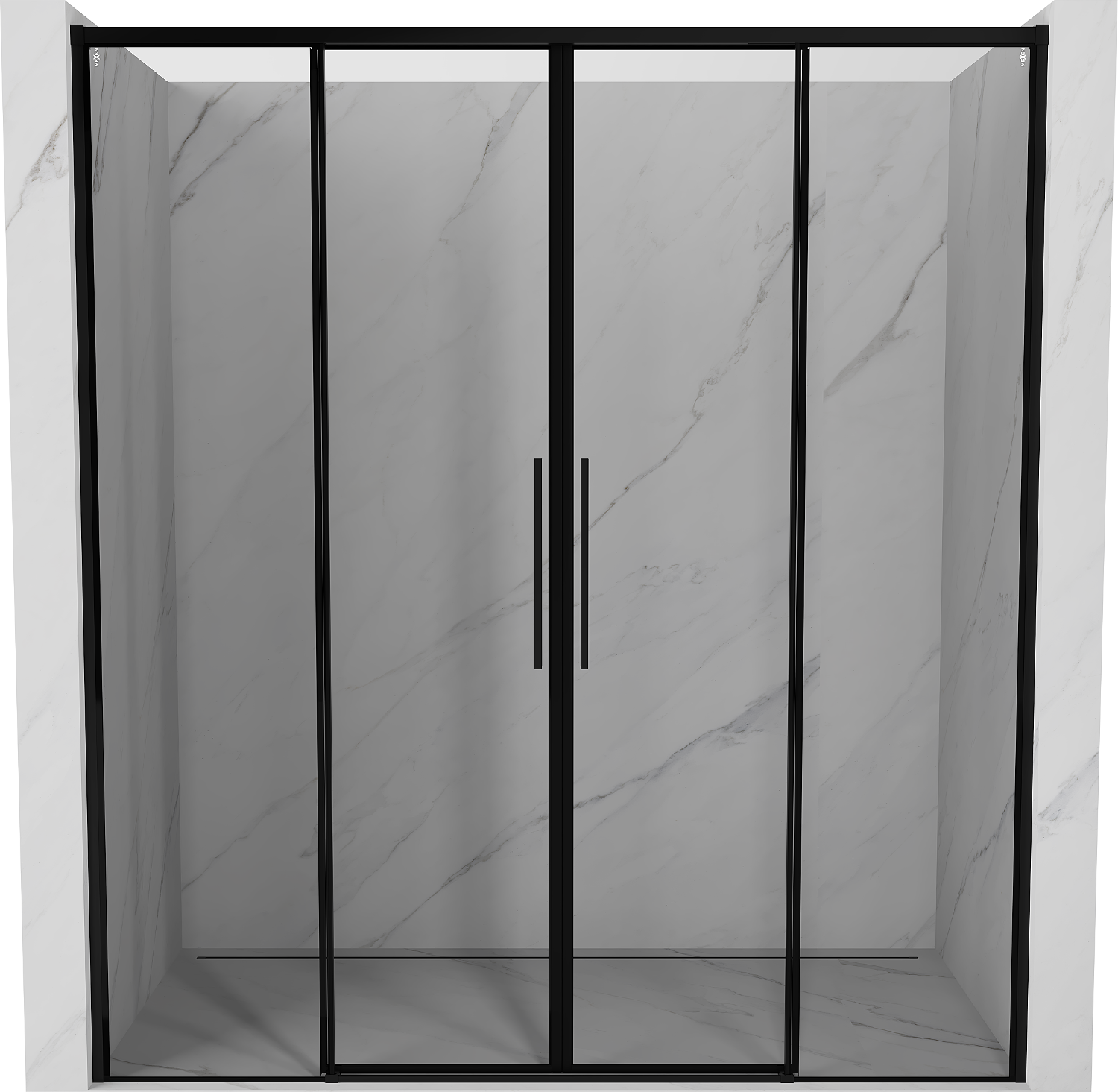 Dörrarnas estetiska utseende är tack vare den dolda skjut- och justeringsmekanismen, som perfekt passar in i en modern badrumsdesign. De dolda delarna ger inte bara elegans, utan också en smidig och bekväm användning varje dag.