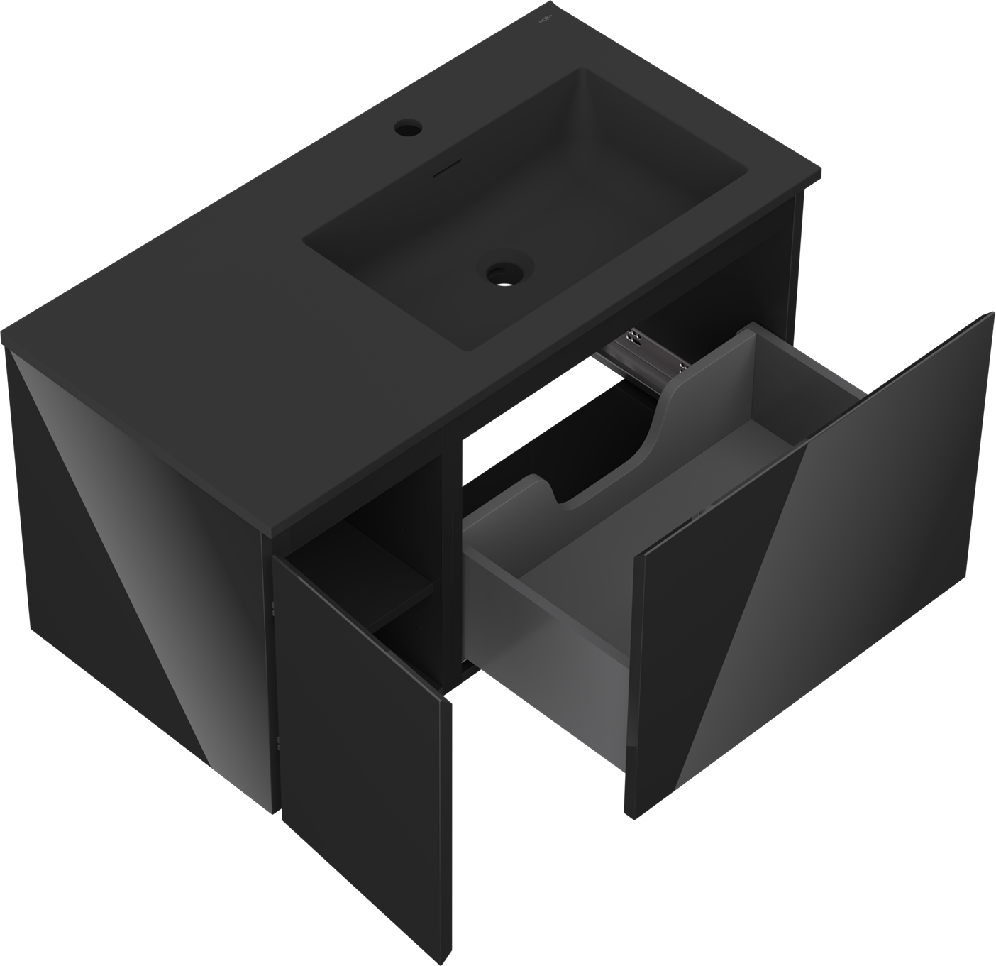 Mexen Orio 90 cm badrumsskåp med Otis tvättställ till höger, 1L, 1D, svart glans/svart matt - 91A13-09047-3-BBFF70-W18P71