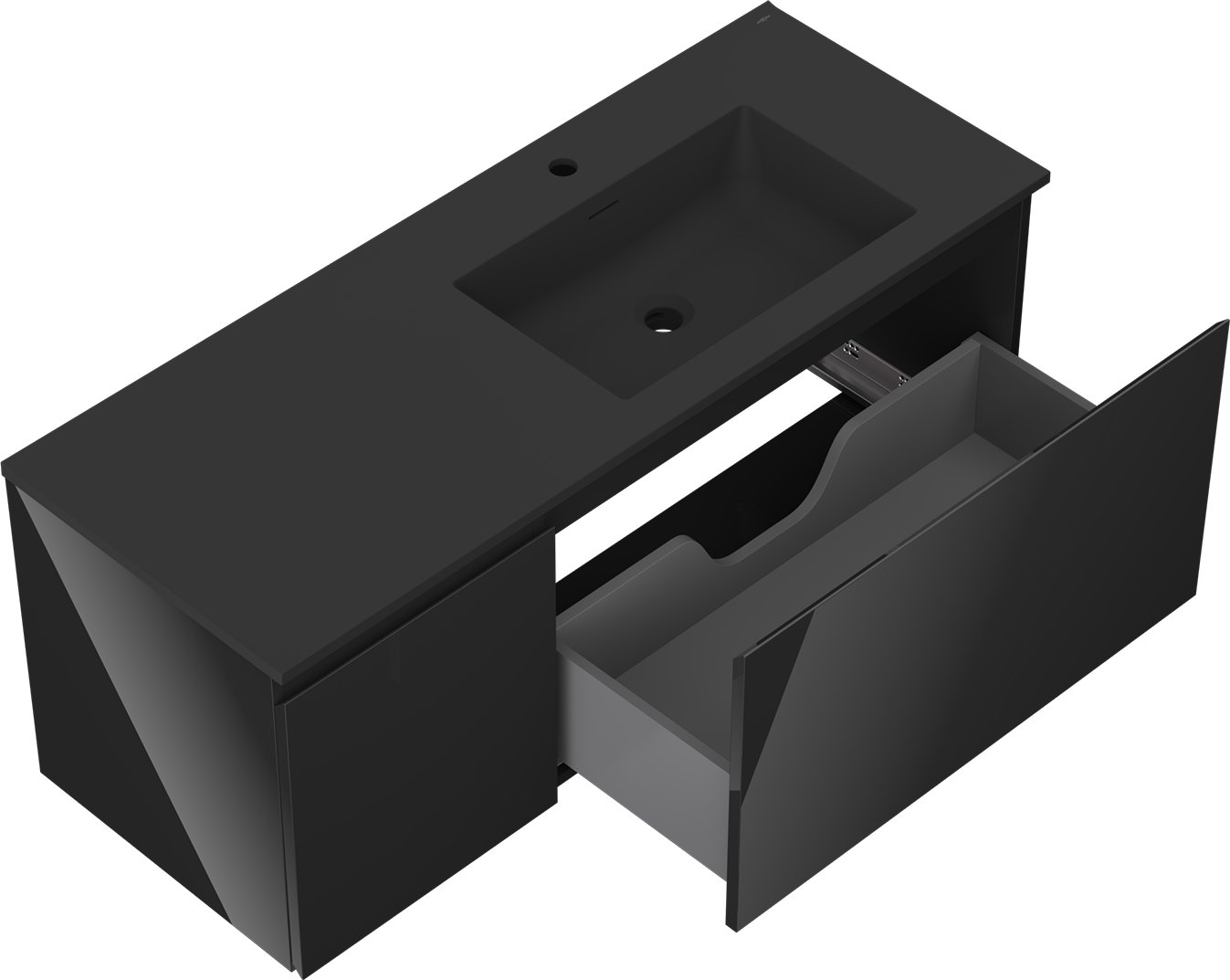 Mexen Orio badrumsskåp 120 cm med handfat Otis höger, 1S, 1D, svart glans/svart matt - 91A13-12047-3-BBFF70-W18P71