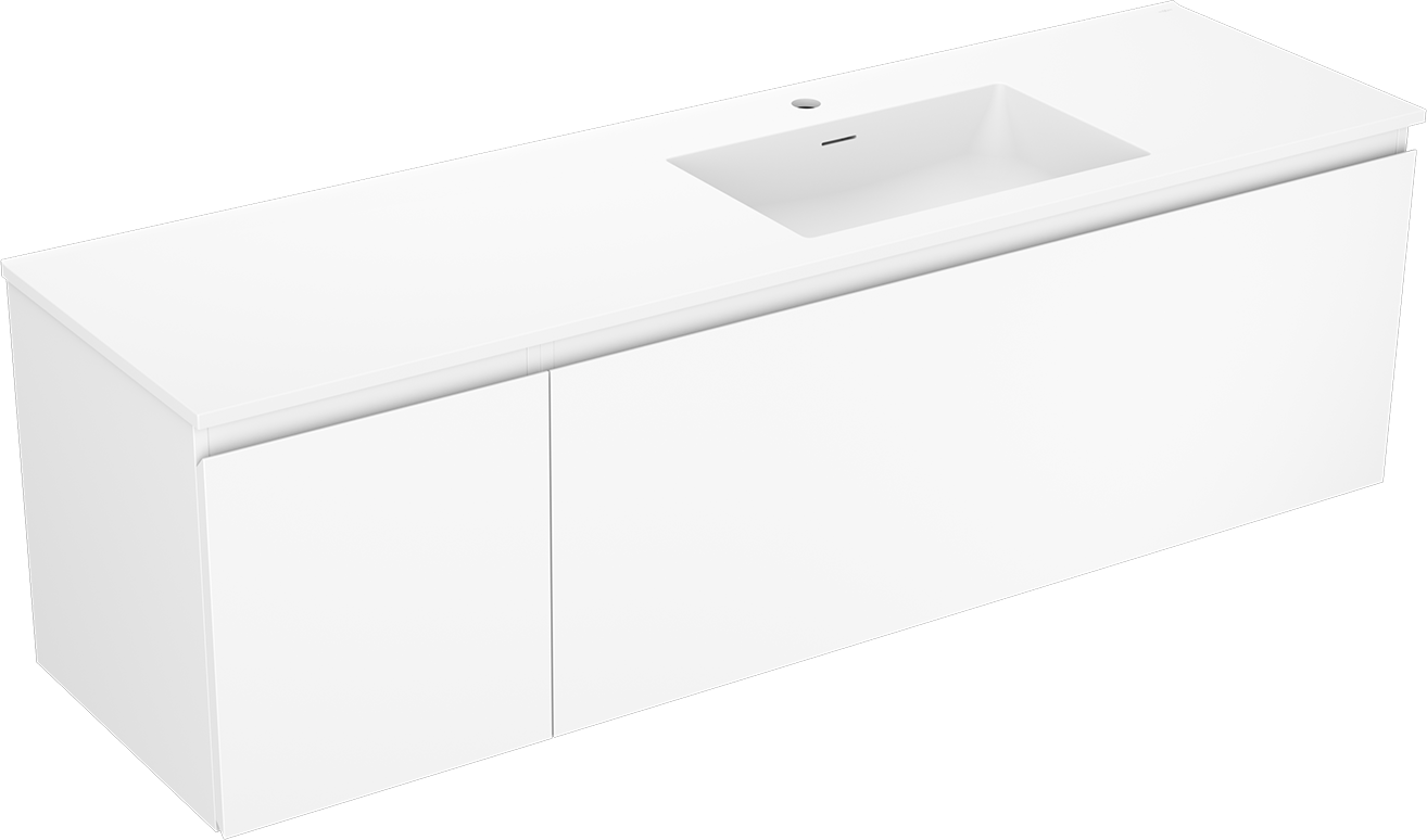Mexen Orio badrumsskåp 160 cm med handfat Otis höger, 1S, 1D, vit matt - 91A13-16047-3-BBFF01-W18P01