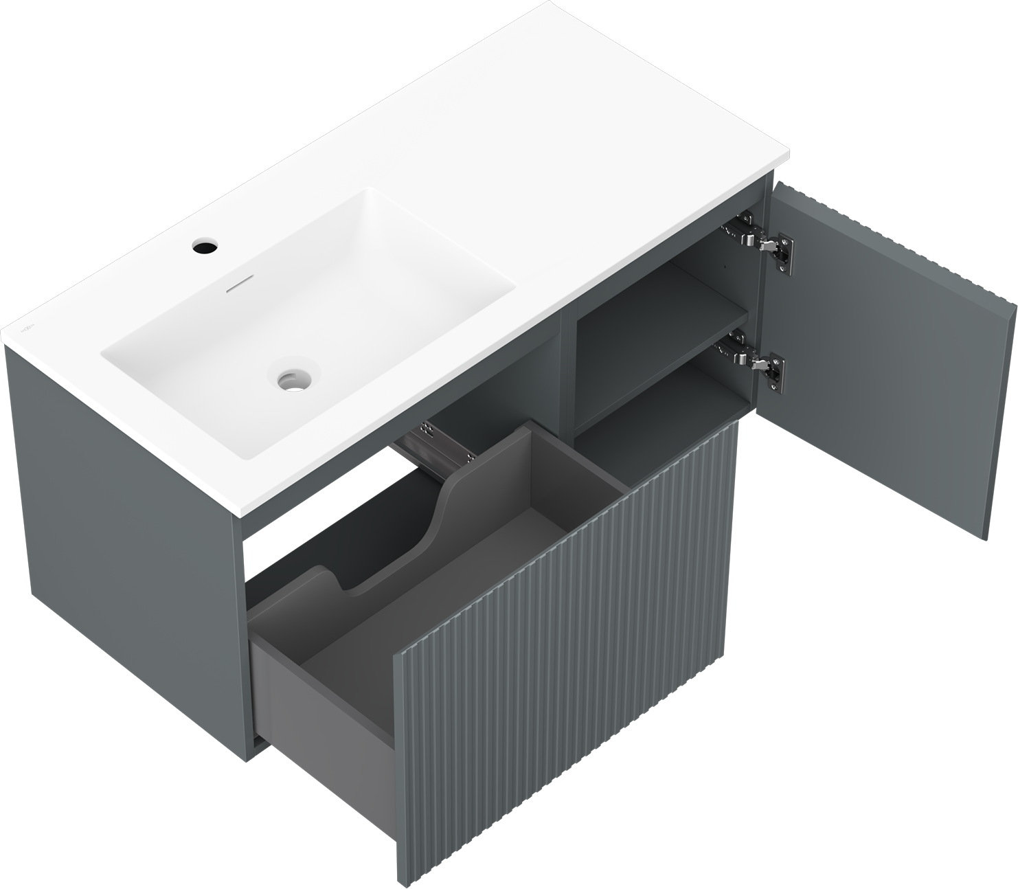 Mexen Rivel 100 cm badrumsskåp med handfat Otis vänster, 1S, 1D, räfflad, grafit matt/vit matt - 91A23-10047-3-BBFF66-W18L01