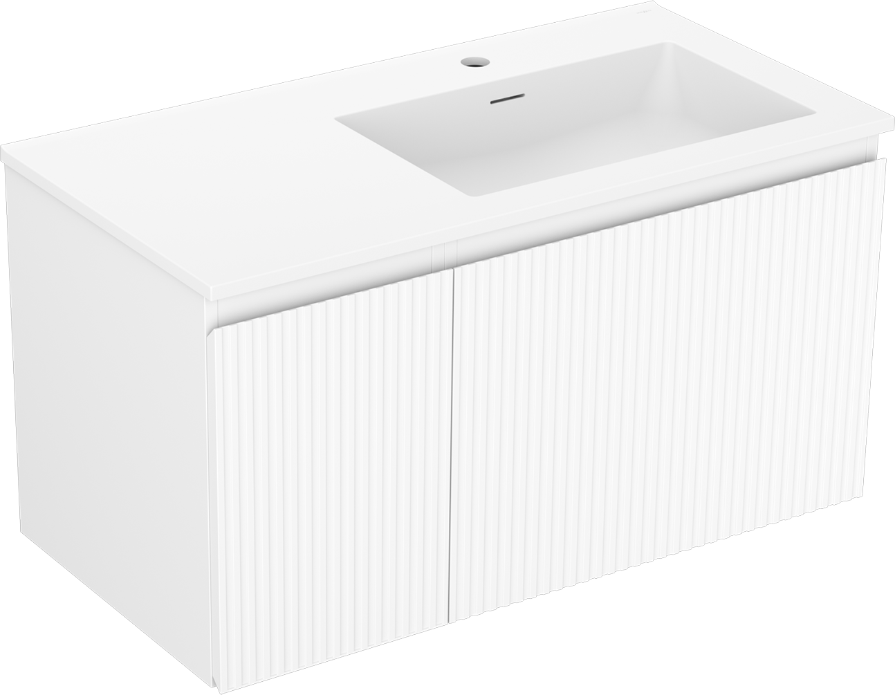 Mexen Rivel badrumsskåp 90 cm med tvättställ Otis höger, 1S, 1D, räfflad, vit matt - 91A23-09047-3-BBFF01-W18P01