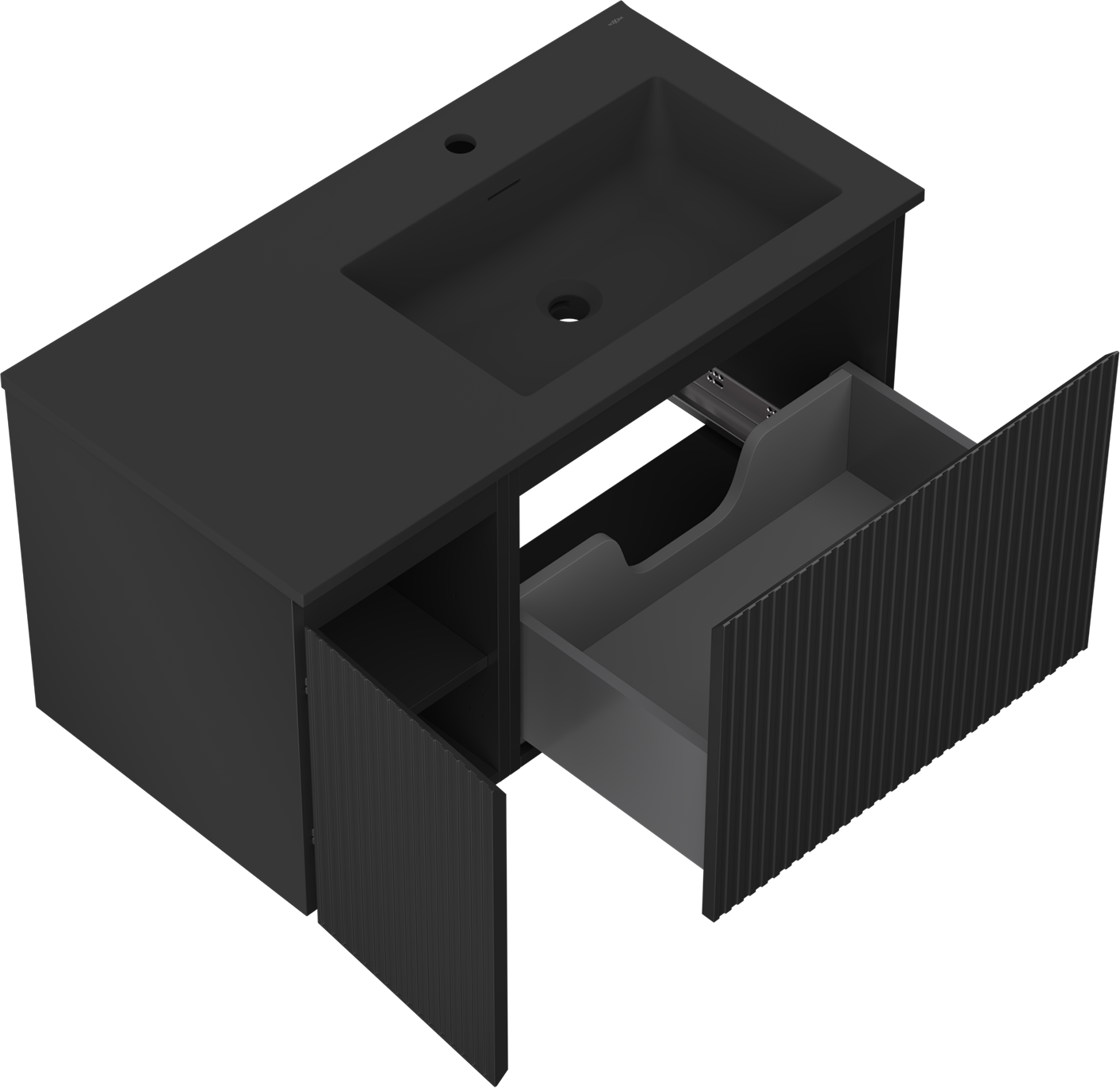 Mexen Rivel badrumsskåp 90 cm med handfat Otis höger, 1S, 1D, räfflad, svart matt - 91A23-09047-3-BBFF71-W18P71