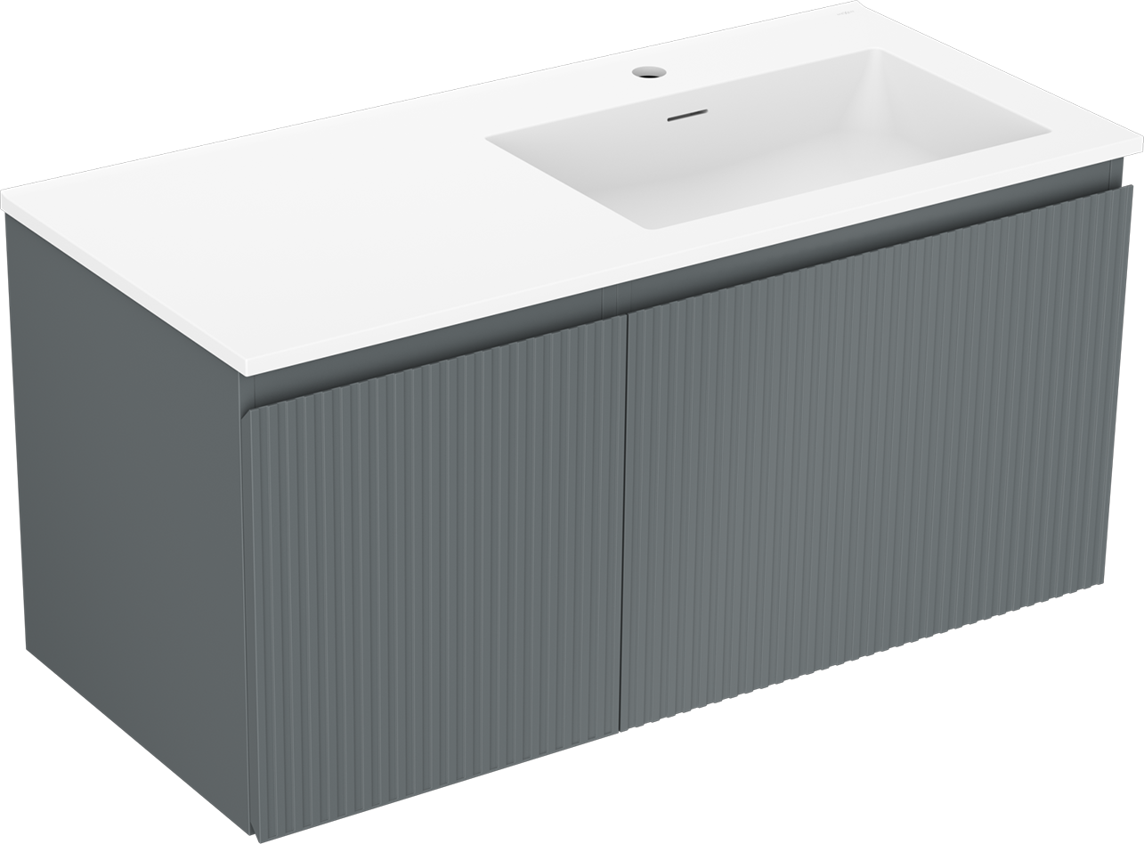 Mexen Rivel badrumsskåp 100 cm med handfat Otis höger, 1S, 1D, räfflad, grafit/vit matt - 91A23-10047-3-BBFF66-W18P01